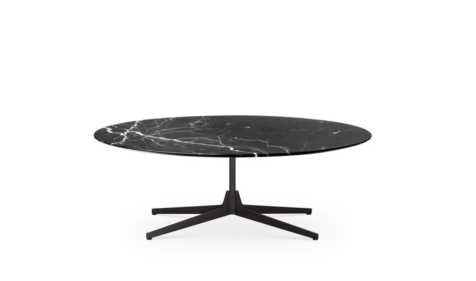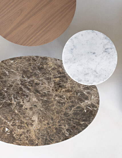 The project takes its inspiration from the concept of our memory, reimagining simple and iconic forms with echoes from the past. Central to the design is the upright hexagonal structure typically used in building construction that, in this particular context, is interpreted as a joint onto which the feet are attached perpendicularly. This style detail is reminiscent of 1950’s furniture design. The base of the table is painted finished metallic wire drawn and the top in marble.