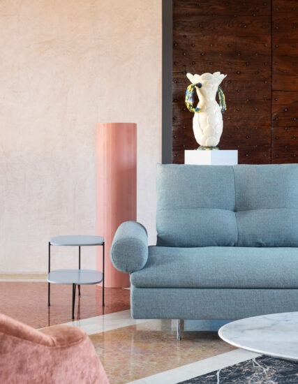 Limes New is a sofa that upholds Saba’s philosophical approach to a larger furnishing project: “Everything slides, everything changes” elaborates Parmenide, who ignited the creative process and guided it through the research phases from the early 2000’s. Limes New is an invitation to go beyond the conventions of predefined space, showcasing how it can become something else altogether simply by moving the back rests. Limes New is a story to tell renewed through sartorial and technical detailing: the asymmetric cut of the back cushions improves support in the lower back. Research into new materials allows the sensation of softness from the goose down filling to come through and guarantees a superior comfort. The volumes have been subtly updated in line with the contemporary aesthetic to include cylindrical armrests in homage to the classic latin heritage. Methacrylate and double depth floating feet.
