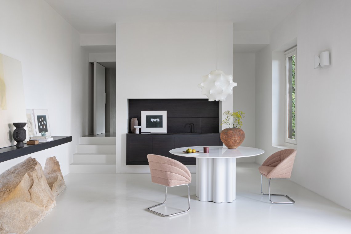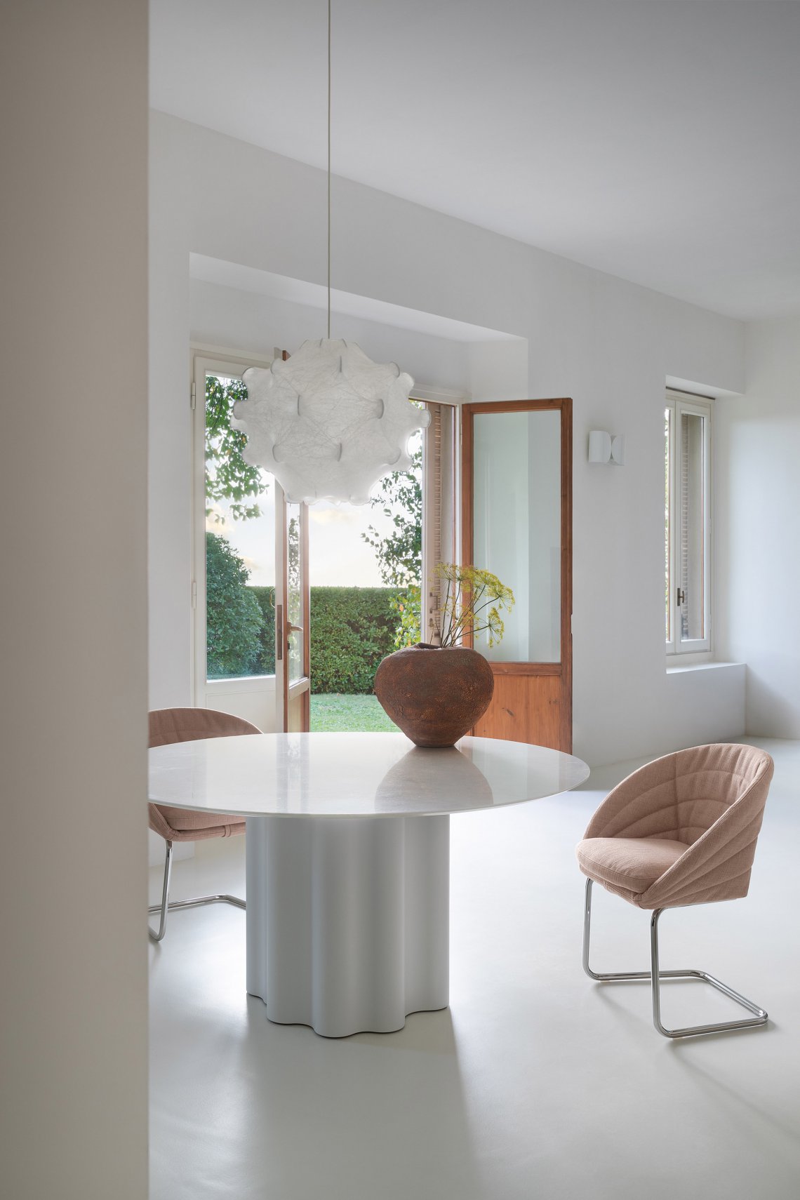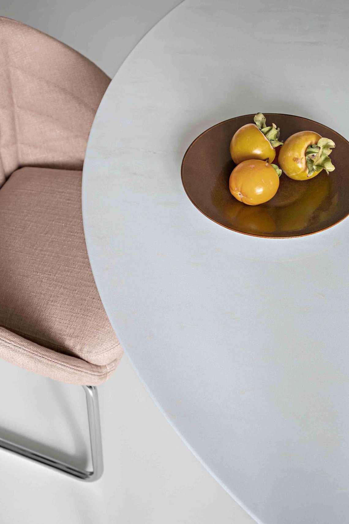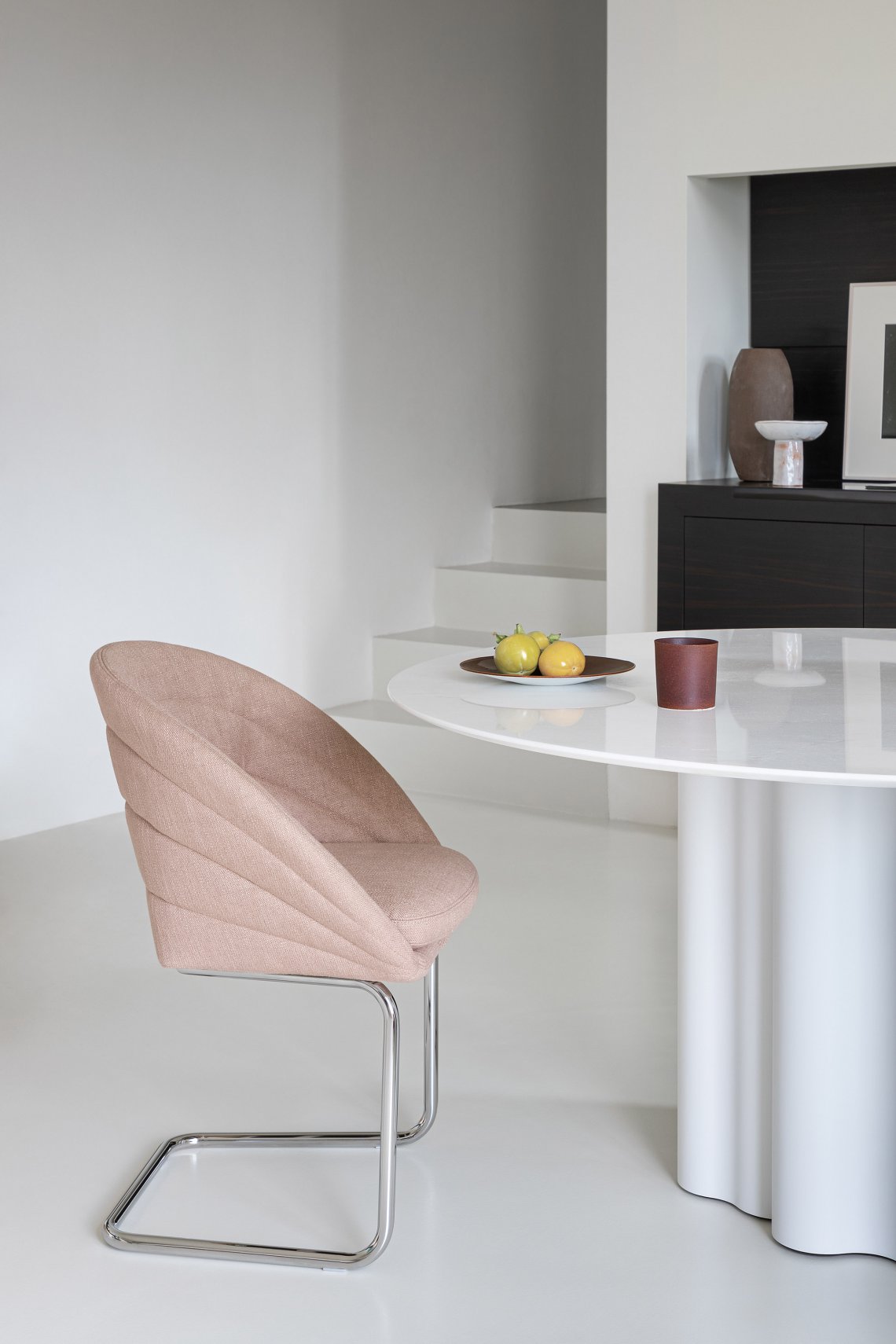 The Fleur armchair and the Petite Fleur chair, designed by Sergio Bicego, are inspired by the graceful forms of a flower and introduce a cantilever structure in the Saba chair and armchair collection.