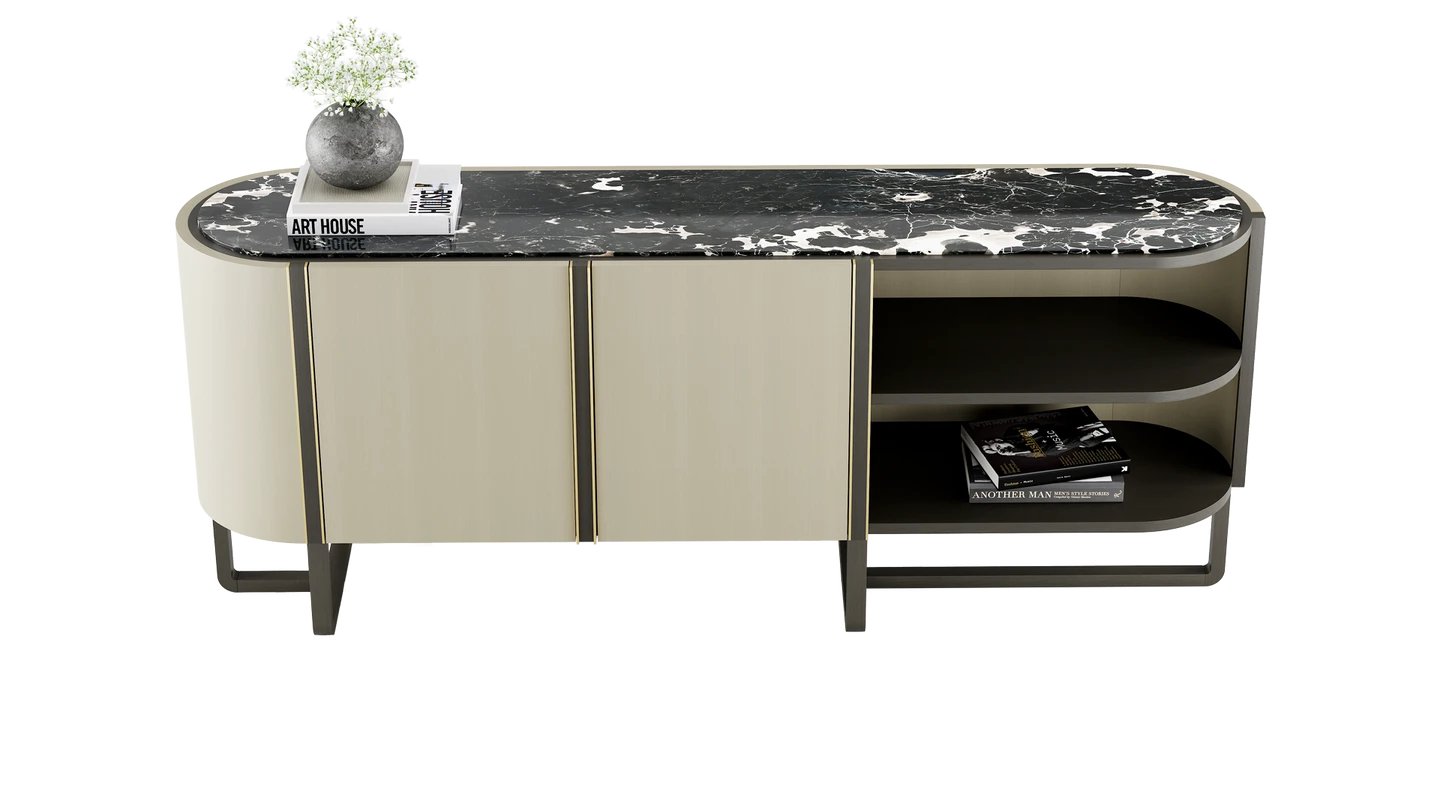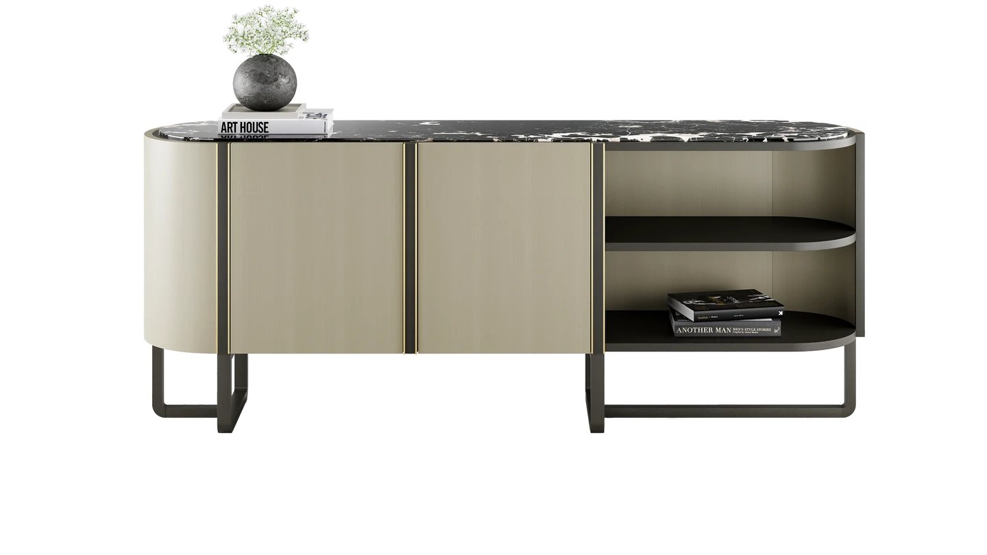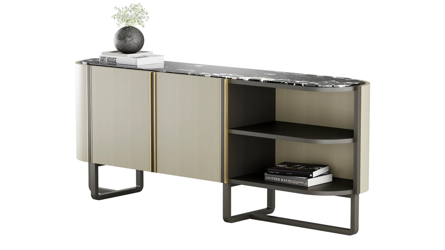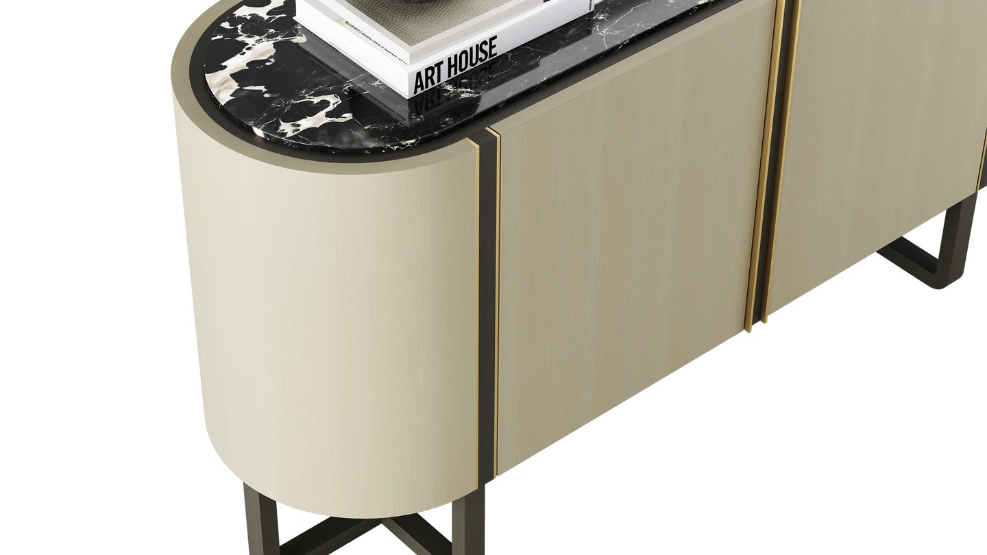 Taking its name from the New Hampshire town, the NASHUA Sideboard is a lesson in easy elegance. Its curved shape is accented with stone inlay and brushed brass highlights, which add to its subtle stylishness.