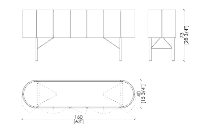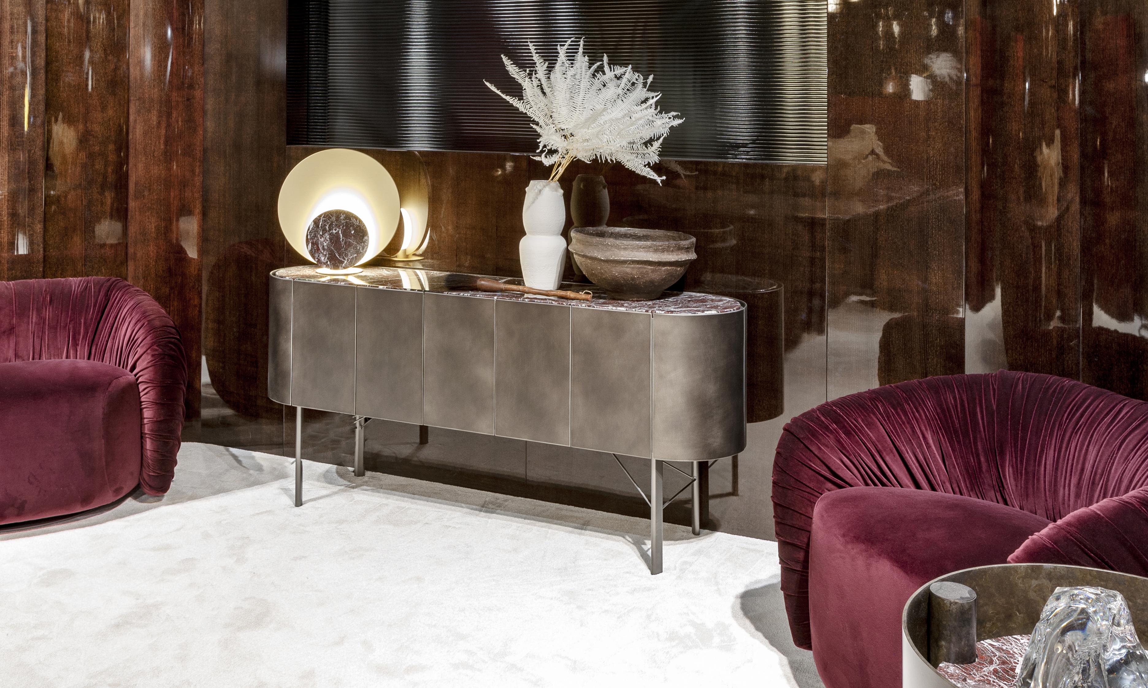 Inspired by the iconic Collectionist unit, this new sideboard proposes its soft and curvilinear design to create a low version, decorated with particular metal legs.