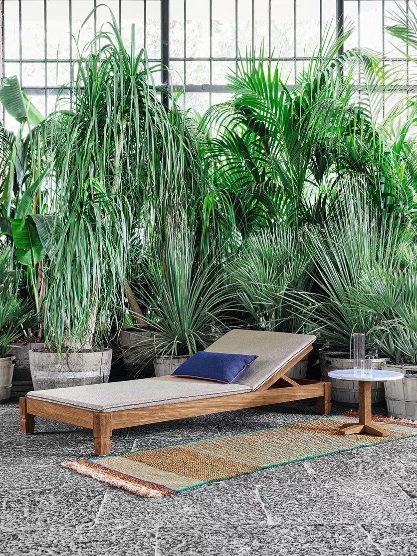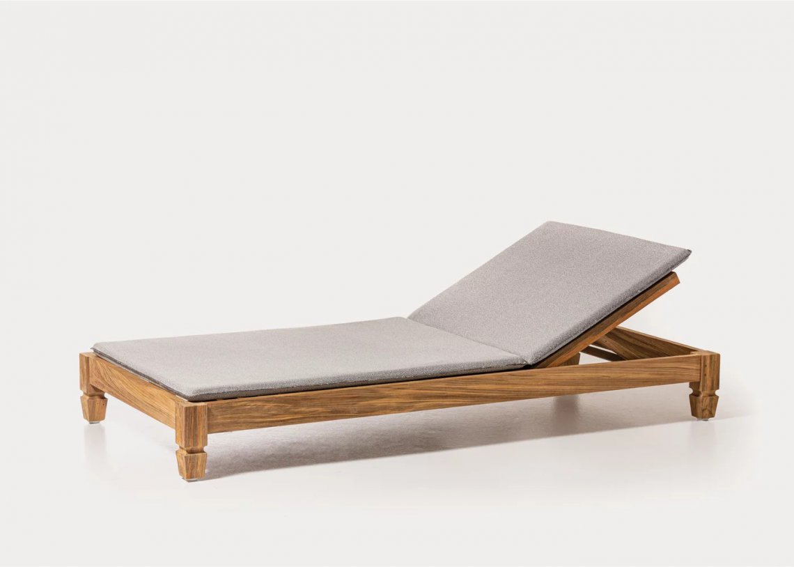 Lettino in stile coloniale di ispirazione esotica, Jeko 81 ha una struttura realizzata in ECOTeak, materiale proveniente dal riutilizzo di travi ed elementi in teak recuperati, riparati con legno riciclato, assemblati e levigati per evidenziare le venature originali. Materasso da 92x202 cm, sfoderabile.