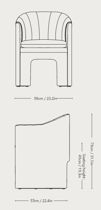 Veneer sheets formpressed together towards a solid wood insert. Milled into shape and lacquered. Natural Rattan weaved around a powder coated stainless steel frame.