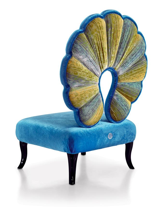 The human mind is a gift that we must learn to know; it must be trained to deal with the soul as a growing force, a flow of energy. This represents the Kundalini chair, of a precious velvet and with refined details in minute mosaic.