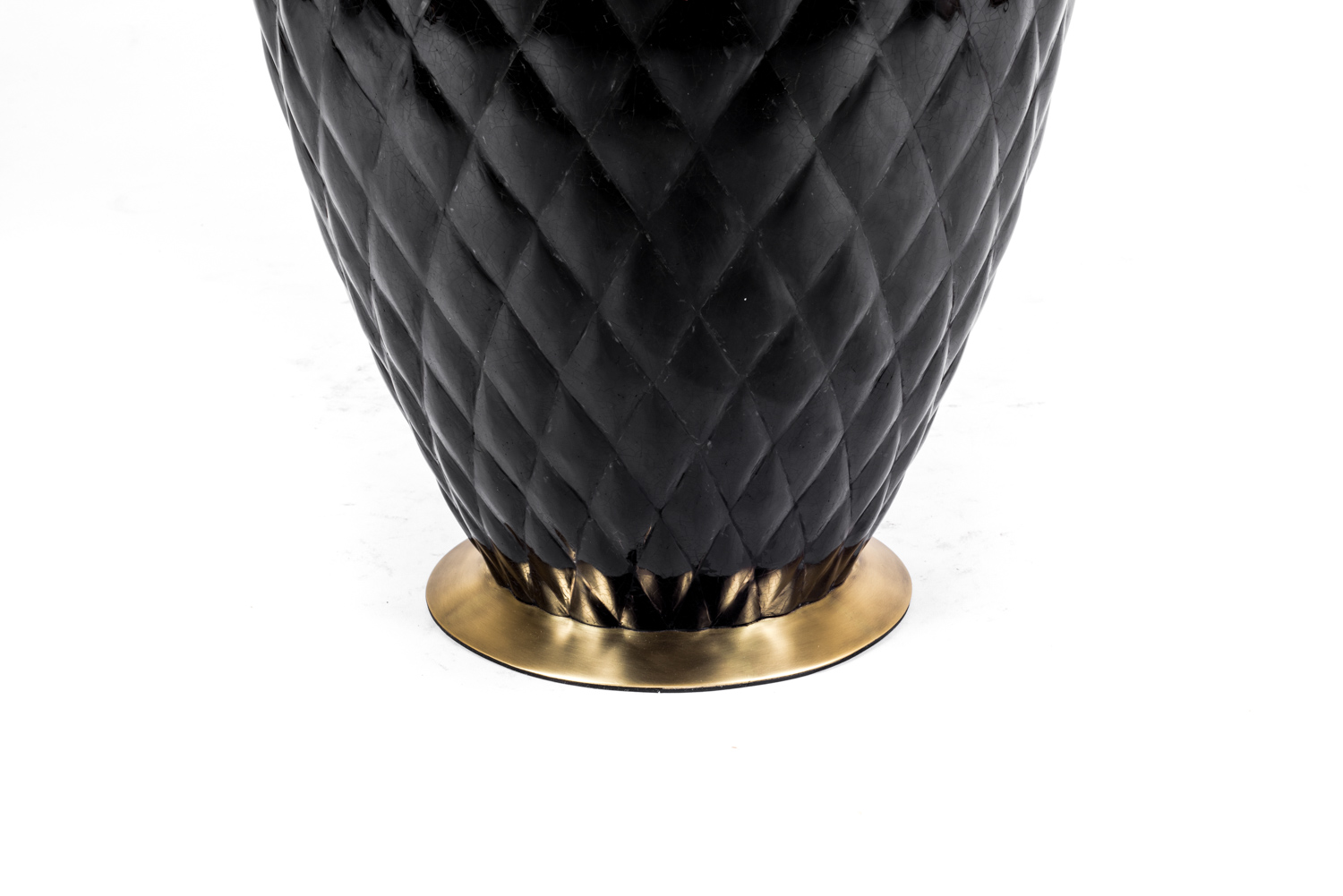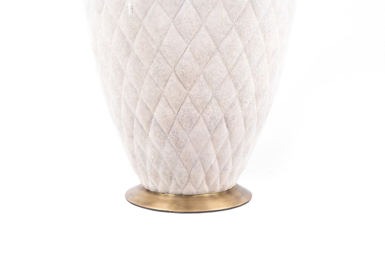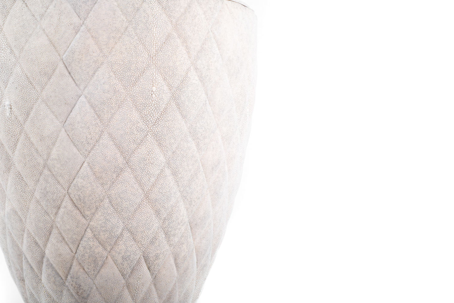 The Coco Stool is an elegant piece with it’s beautiful quilted detailing and bronze-patina brass border. A great stool for a dining table or living room area; available in cream shagreen or black pen shell.