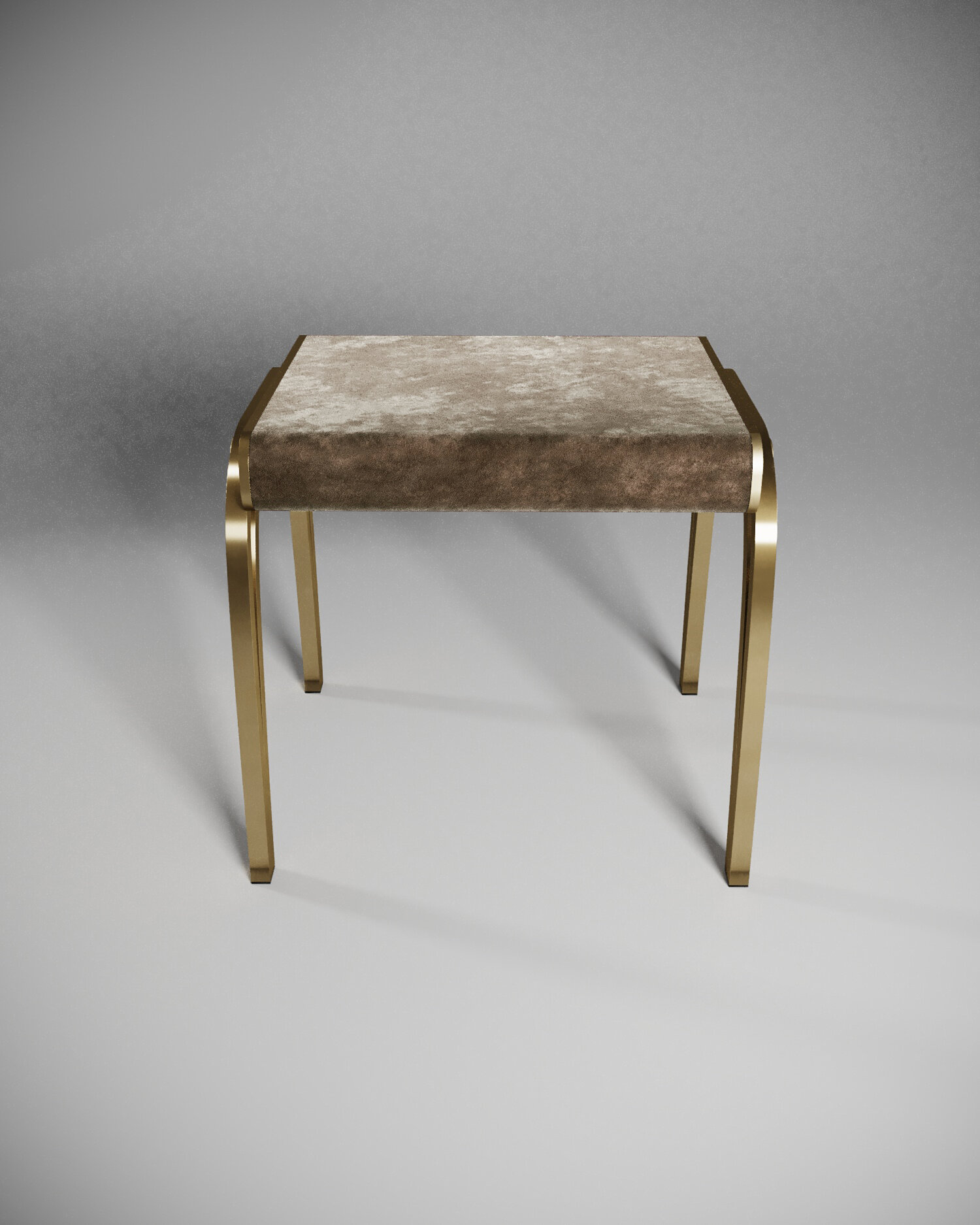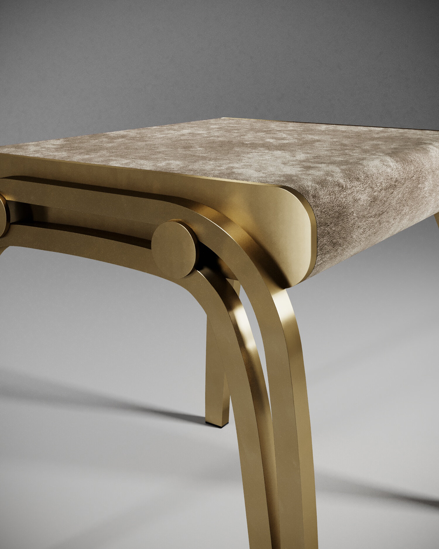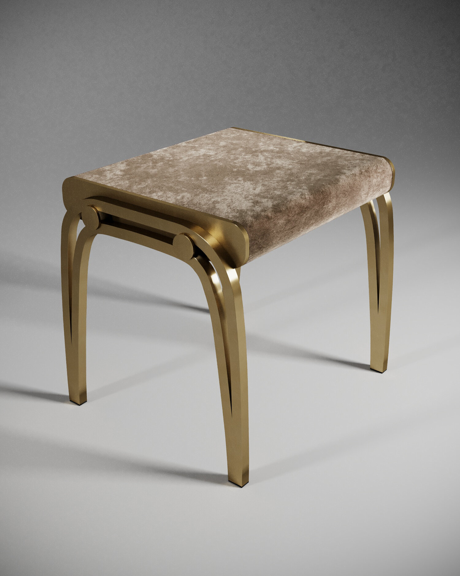 R&Y Augousti-Creamy Taupe Velvet & Brass限量版維多利亞凳子