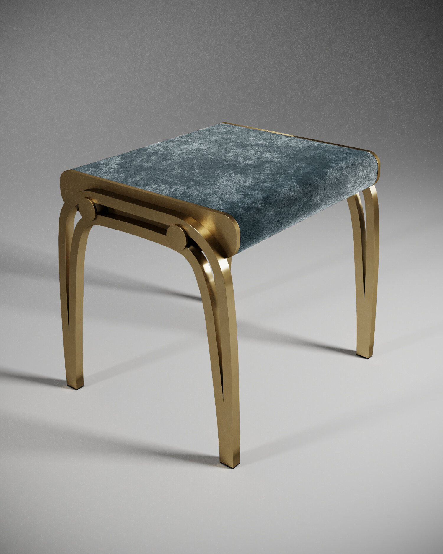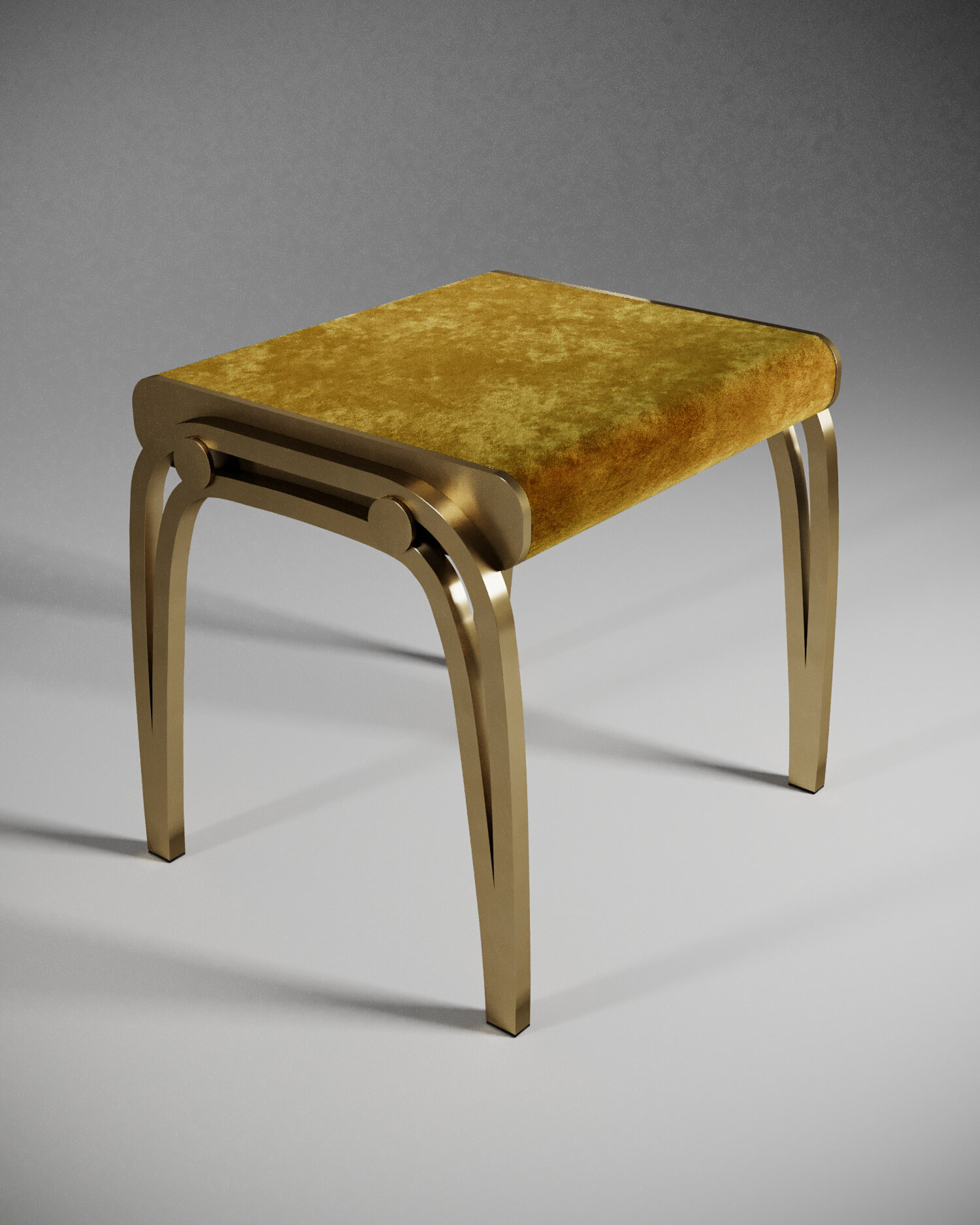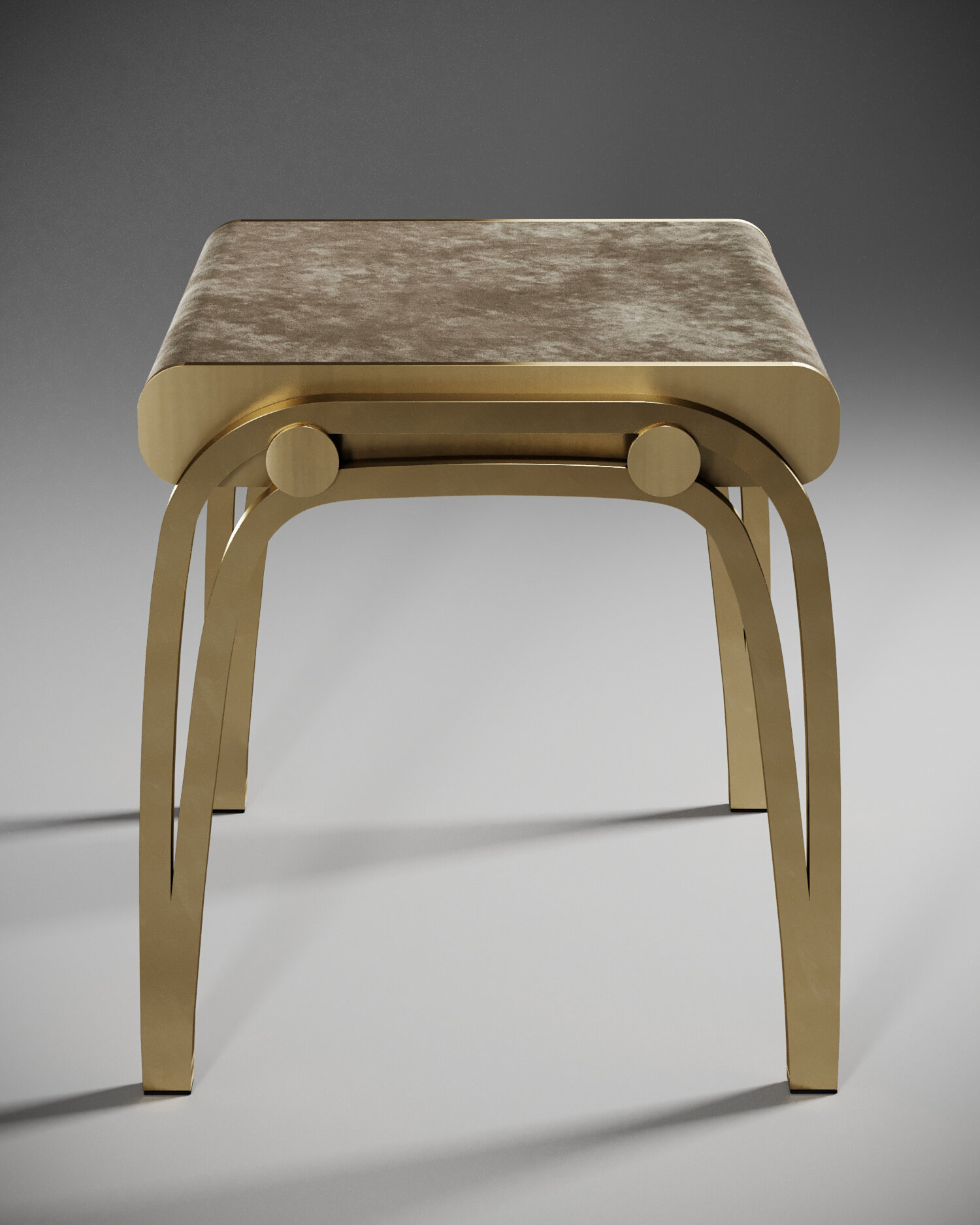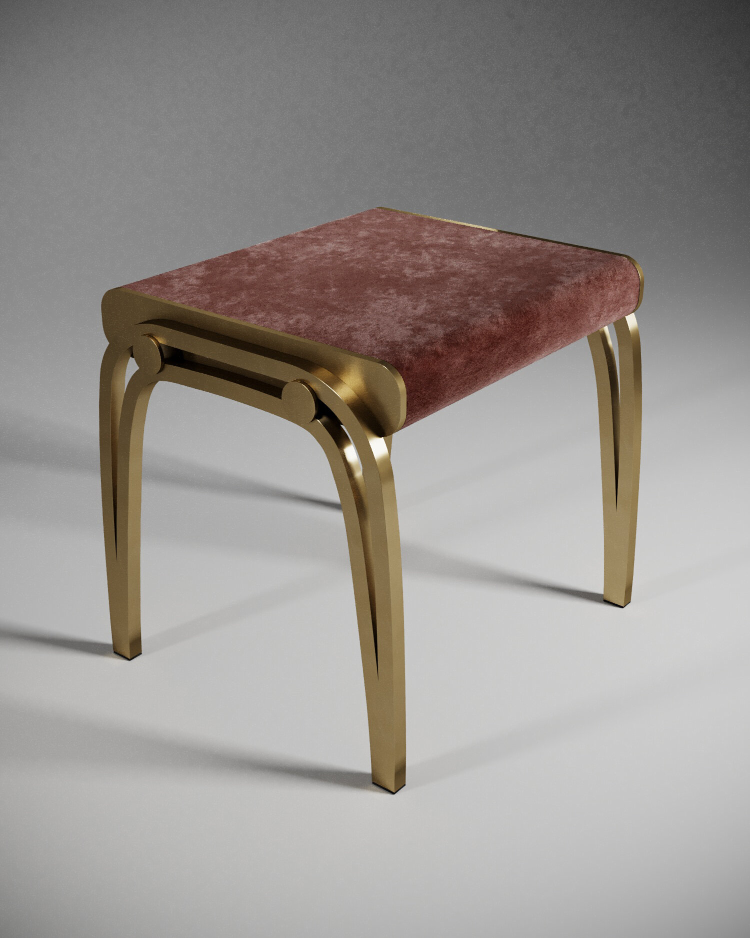R&Y Augousti-Creamy Taupe Velvet & Brass限量版維多利亞凳子