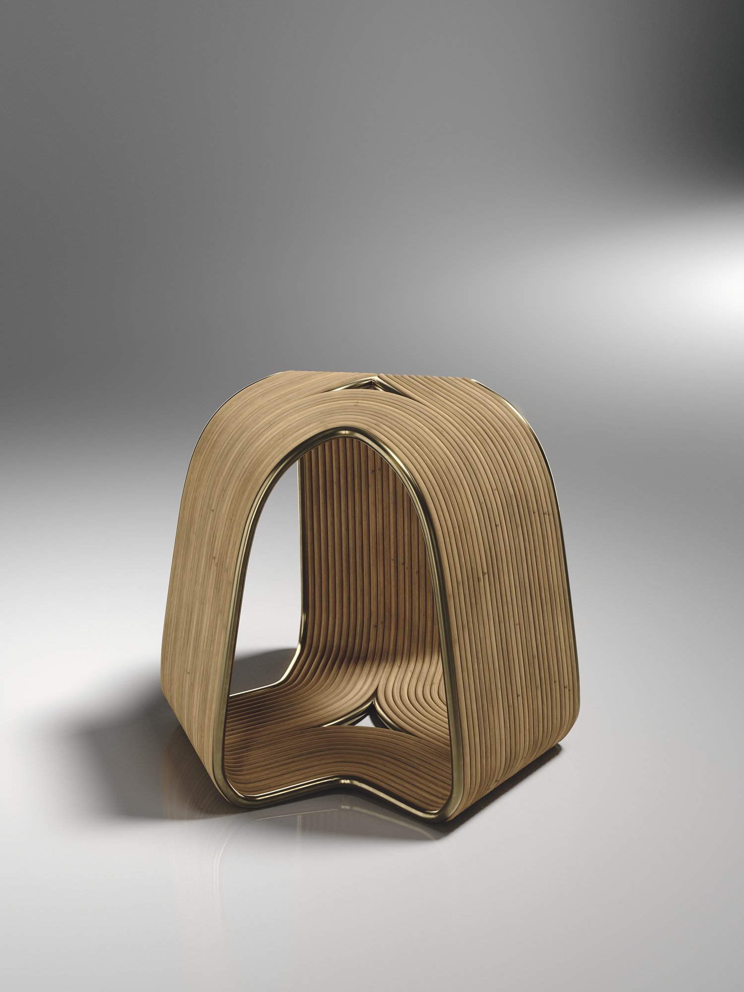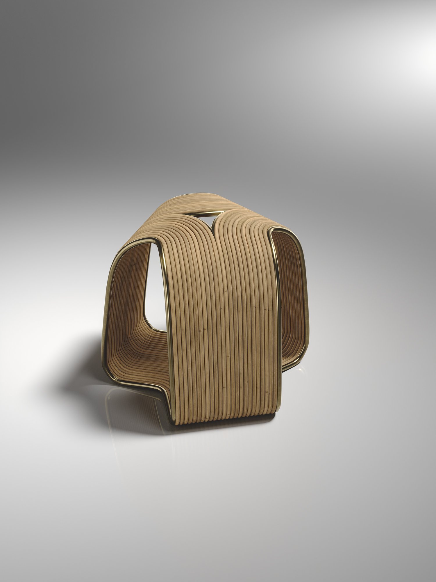 The Licol Stool by R & Y Augousti is a part of their new Rattan capsule launch. The piece explores the brand's iconic DNA of bringing old world artisanal craft into a contemporary and utterly luxury feel. This stool is done in a natural rattan finish, with bronze patina brass details. Available in other finishes. Part of the Augousti Rattan capsule, see images of the collection at end of slide. Custom sizing/finishing on request.