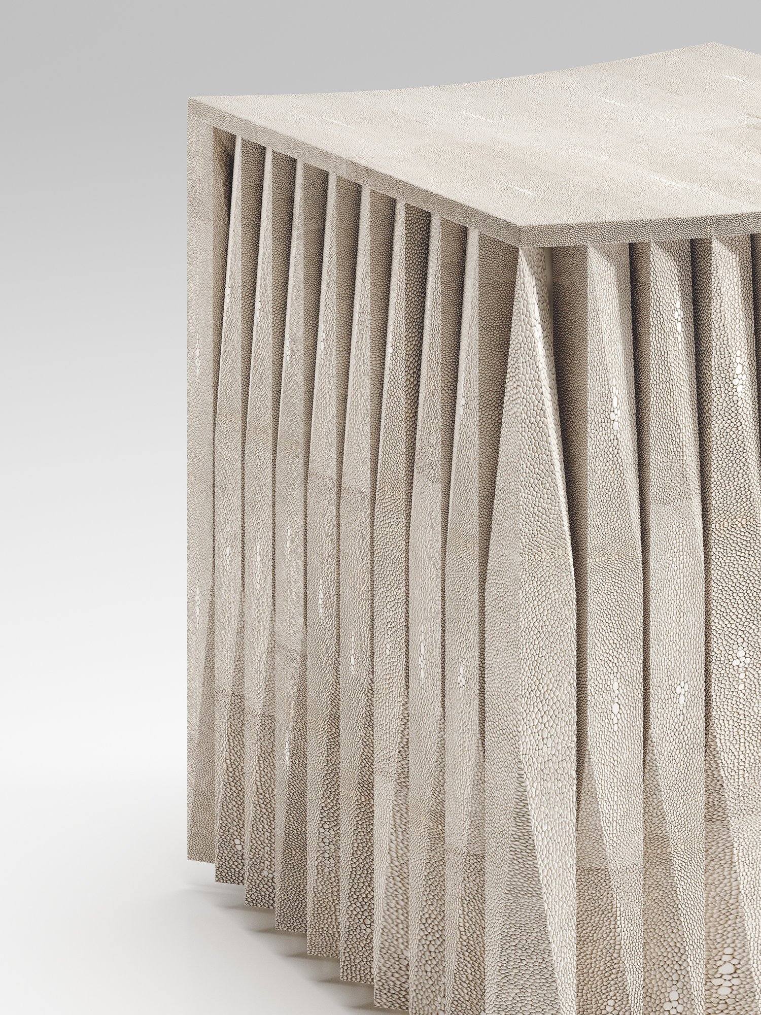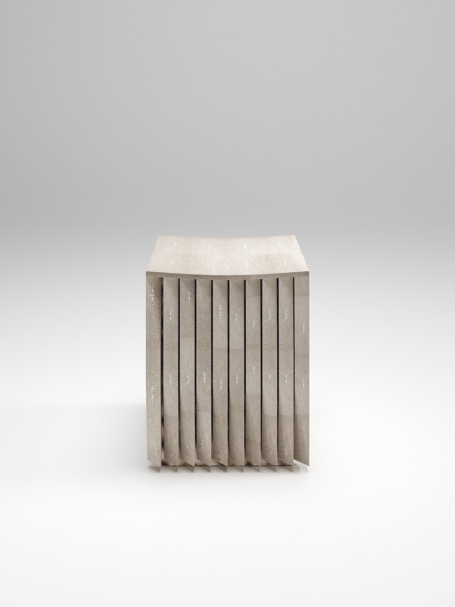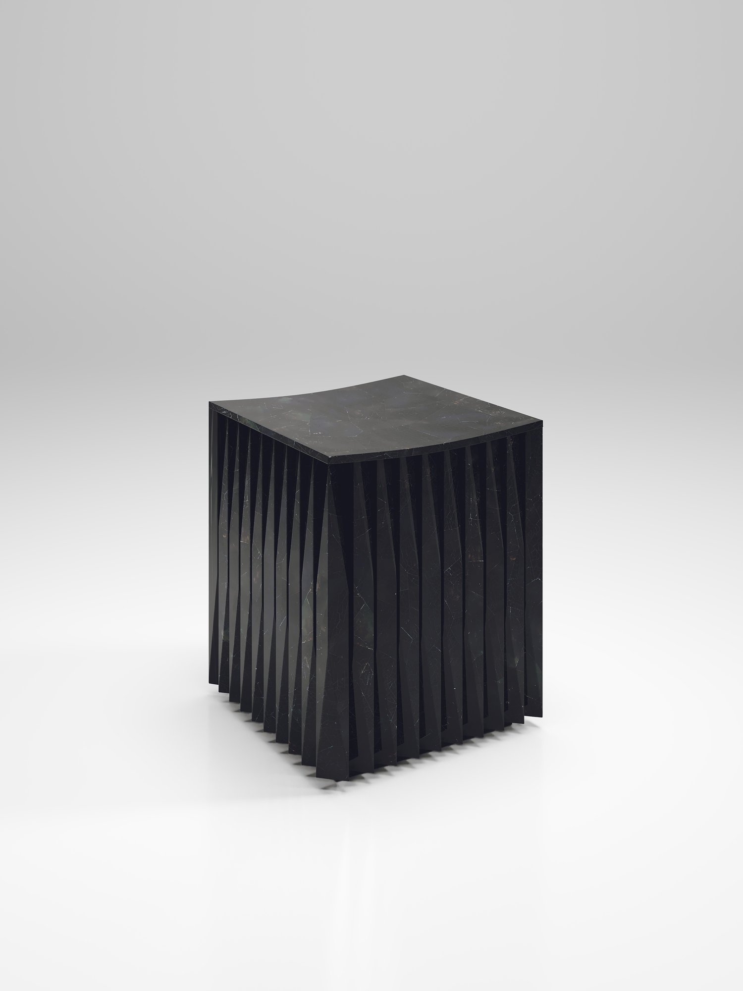 The fluted stool by R & Y Augousti is a sleek and geometric design. This piece provides comfort while retaining a striking aesthetic with the incredible hand craved fluted details. Available as a bar cabinet, chest of drawers and vanity cabinet