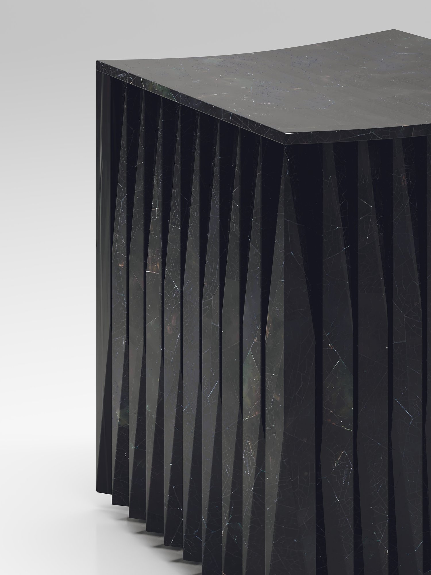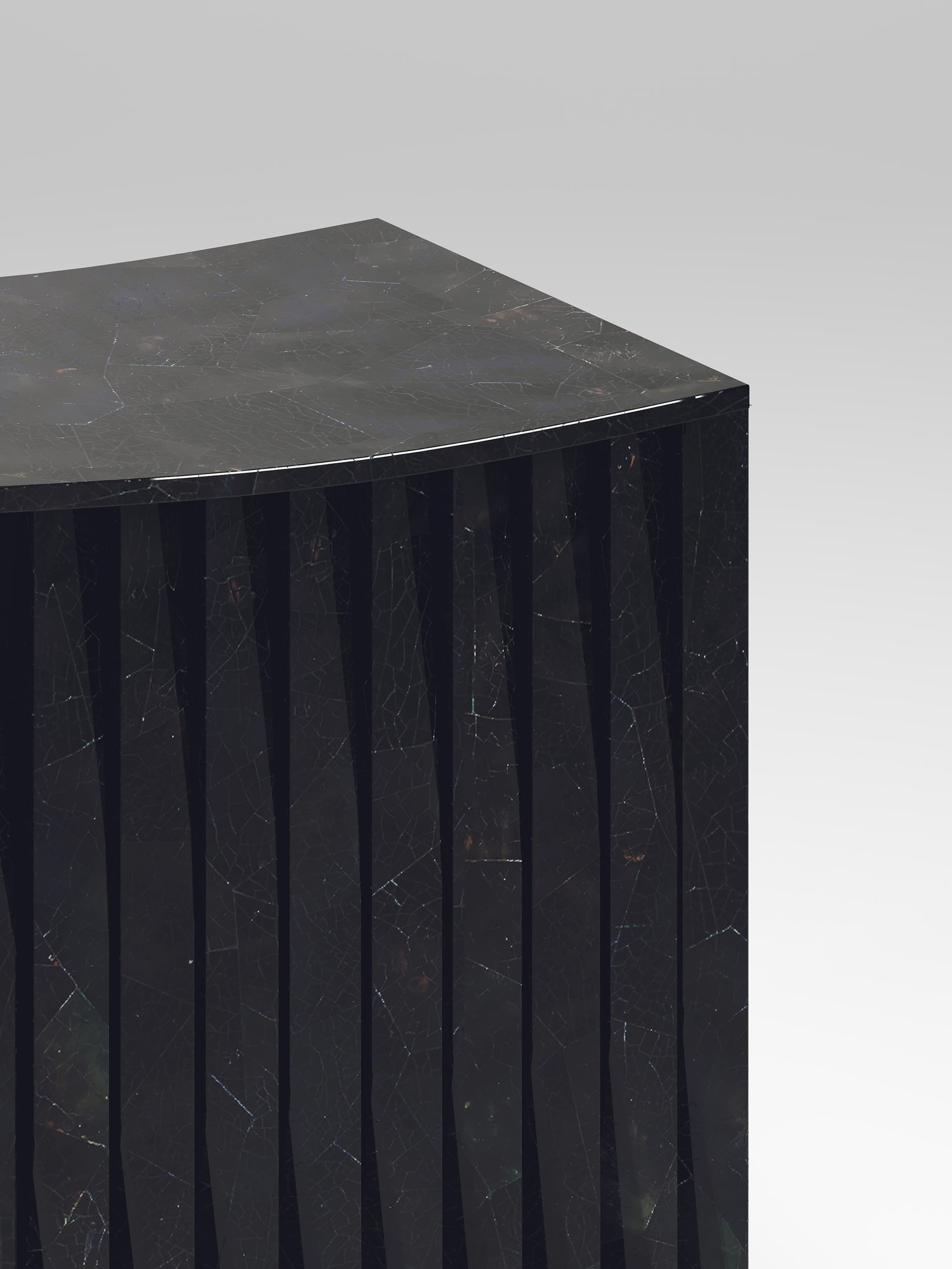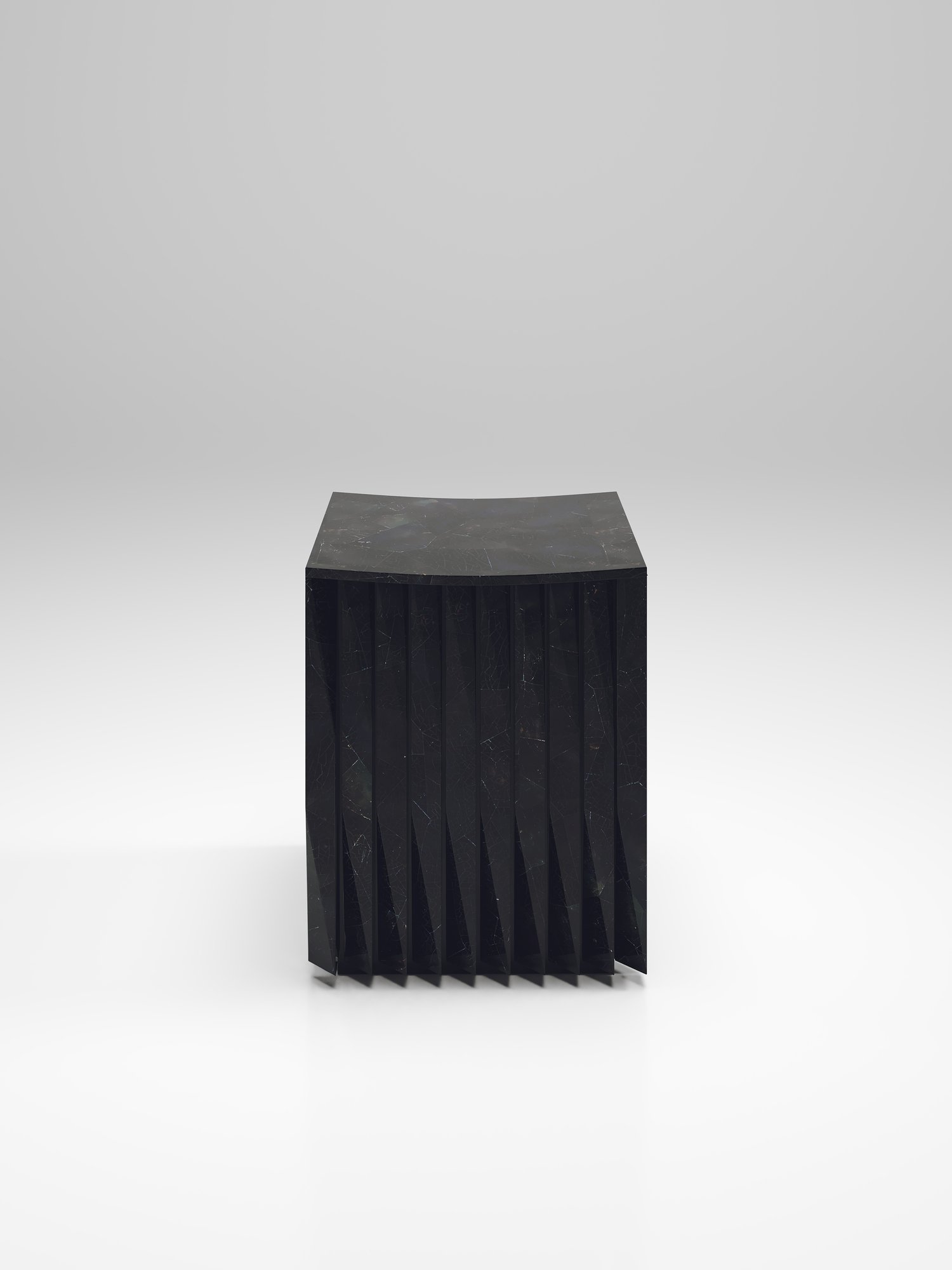 The fluted stool by R & Y Augousti is a sleek and geometric design. This piece provides comfort while retaining a striking aesthetic with the incredible hand craved fluted details. Available as a bar cabinet, chest of drawers and vanity cabinet