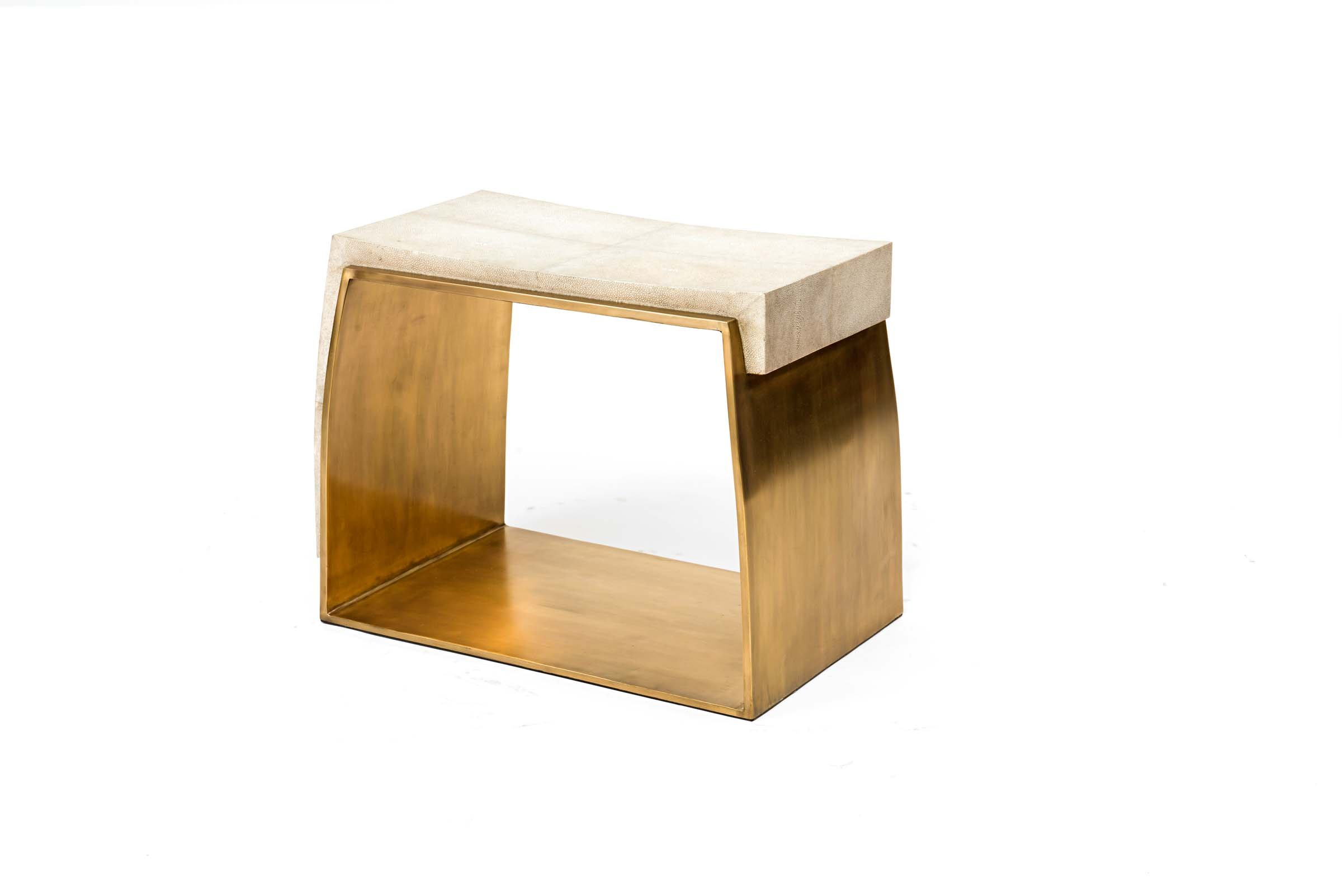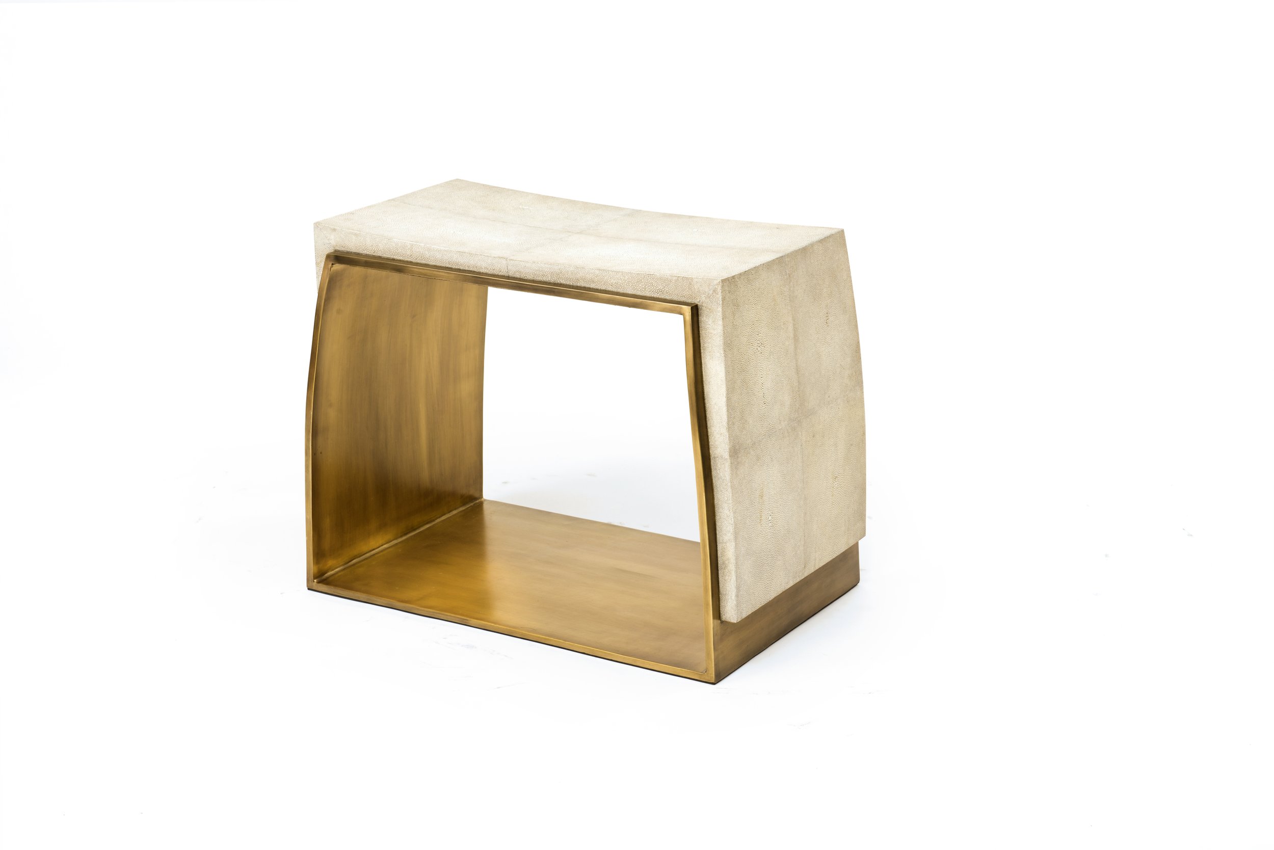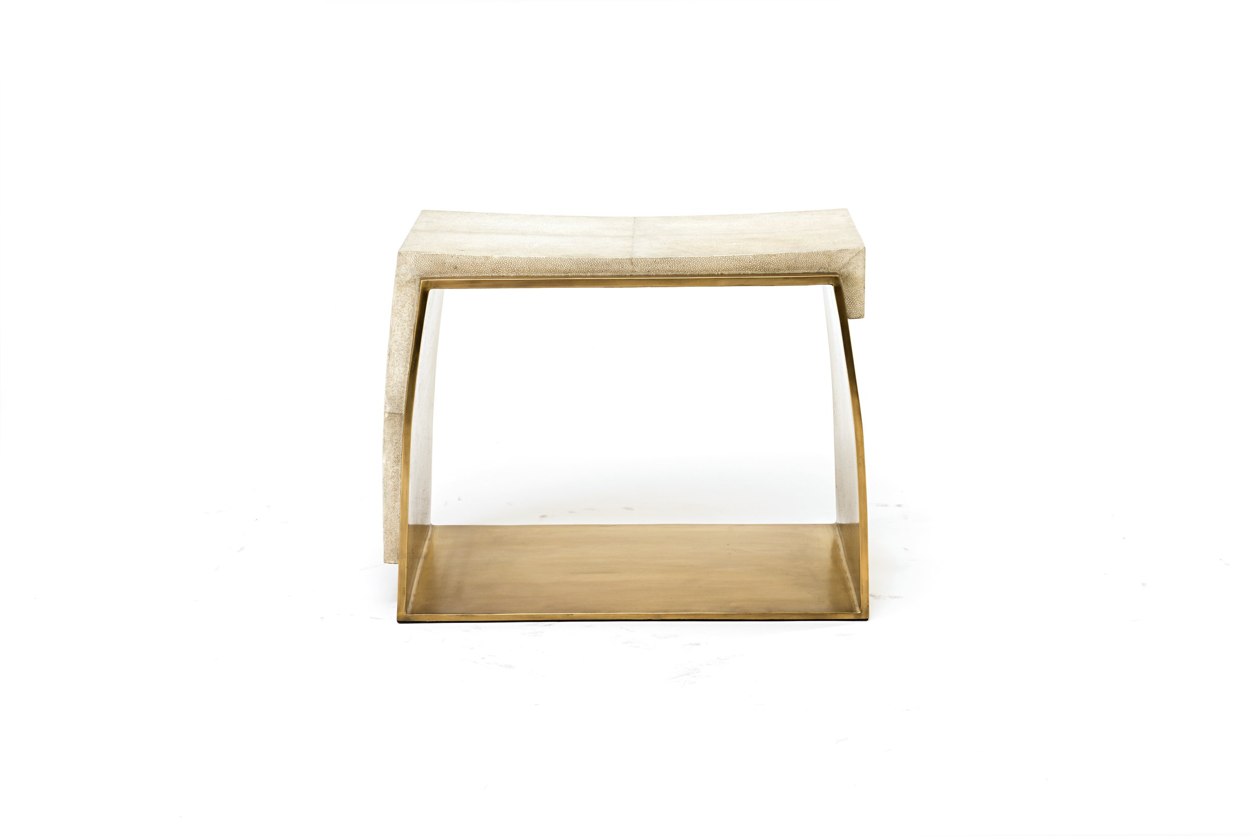 The Laurens desk is both graphic and minimalist with its asymmetrical superposition of cream shagreen on a bronze-patina brass structure. A console version is also available, custom color and size available upon request.