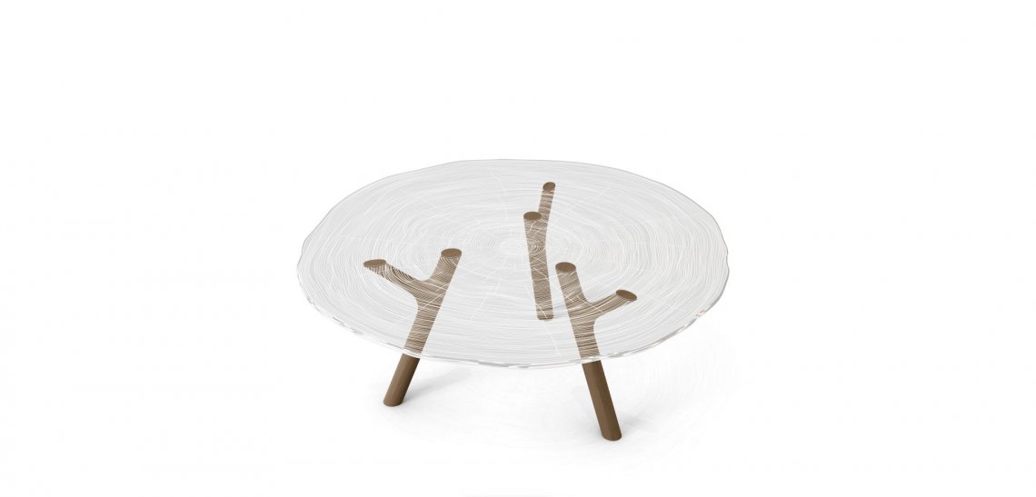 organiche della natura. La base in rovere massiccio è finita a mano ed il piano trasparente in Altuglass? è finemente inciso