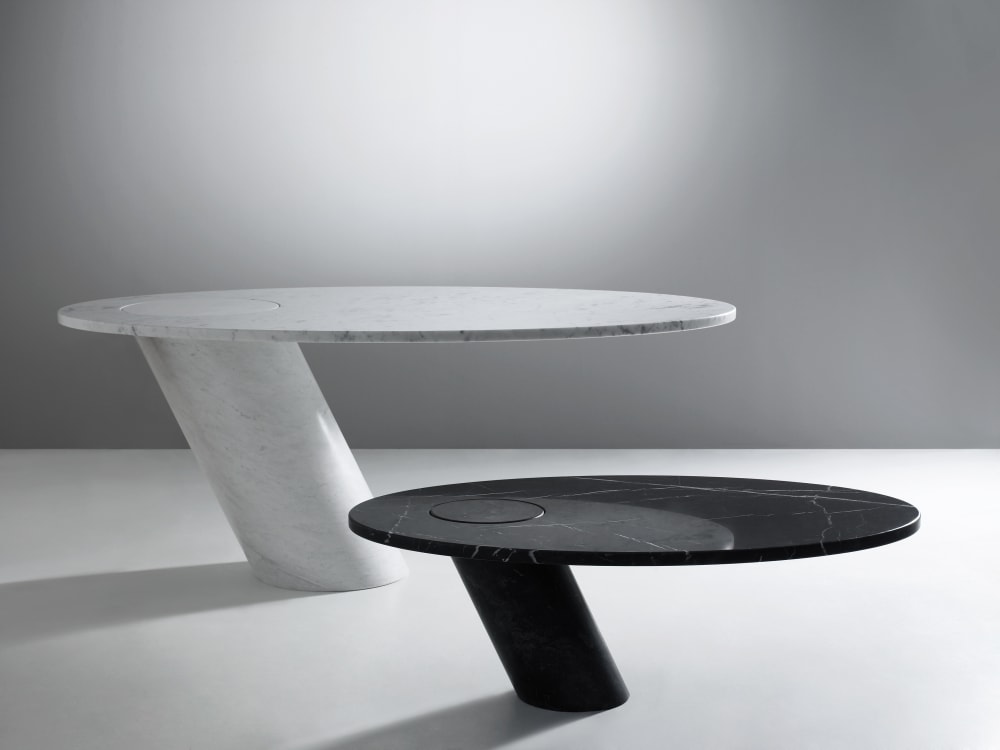 Vero e proprio record costruttivo, il tavolo “Eccentrico” porta Angelo Mangiarotti verso i primati di alcuni grandi “costruttori” di mobili del Novecento, come il Franco Albini della libreria “Veliero” e il Carlo Mollino del tavolo “Cremona”: progetti che per i limiti a cui erano spinti hanno mostrato traguardi teorici mai raggiunti prima.