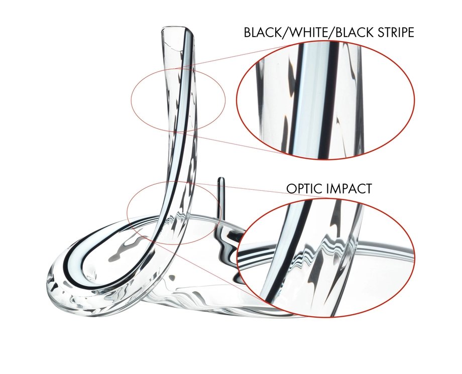 Mamba 醒酒器以其卷曲的形狀更適合年份短的紅酒,其直立的姿態(tài)也更利于空氣穿過酒體,進(jìn)行二次醒酒。當(dāng)紅酒流過蜿蜒的瓶頸中激發(fā)出氣泡和干脆的響聲,符合它造型的定義。