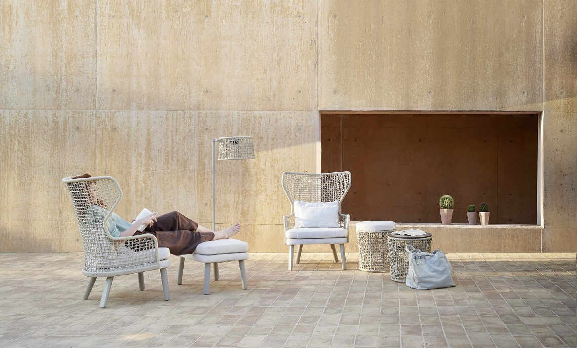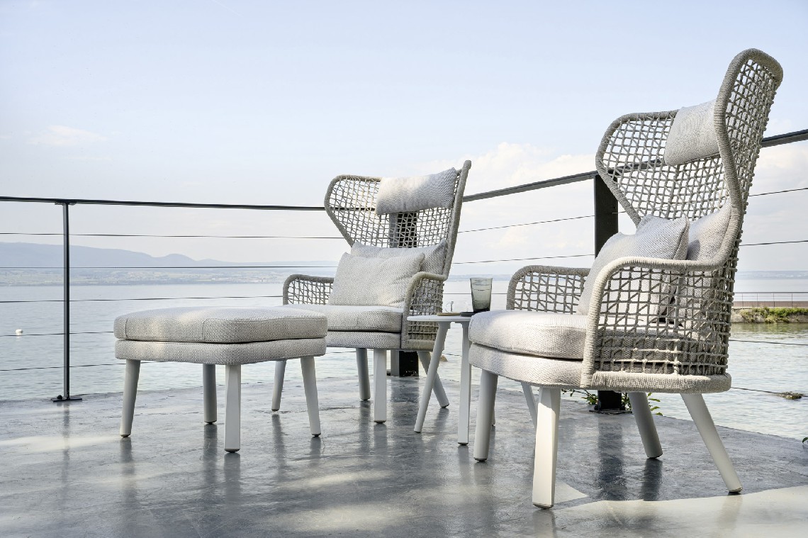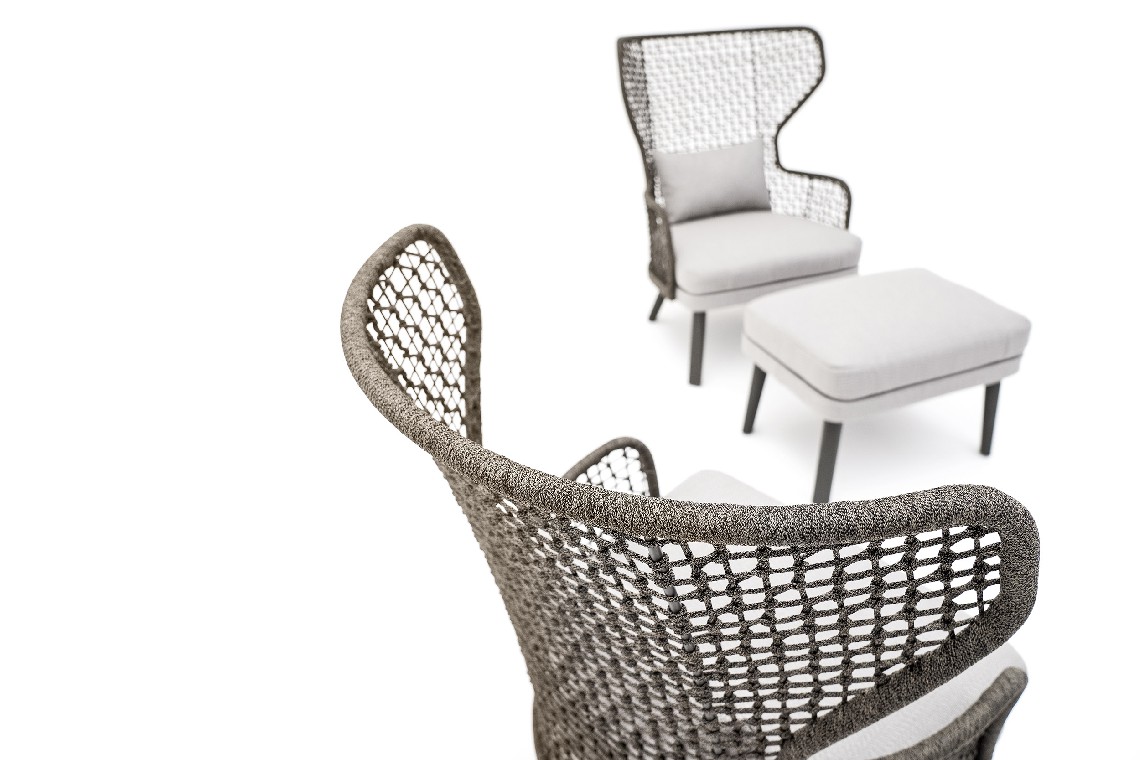 The footrest of the Emma collection accompanies the seats of the homonymous collection, in particular the bergère, adding an additional touch of comfort to spend the days in the open air in total relaxation.