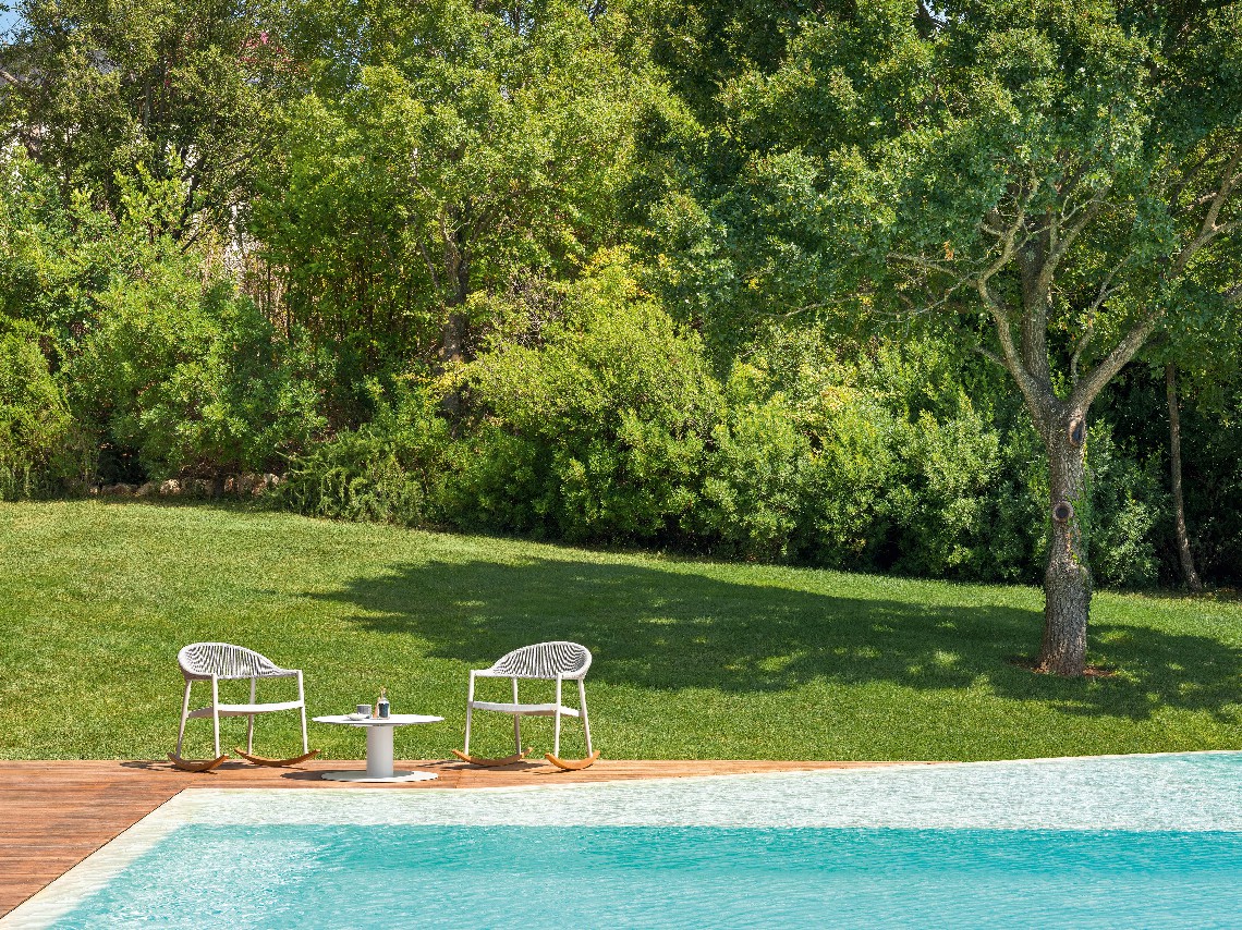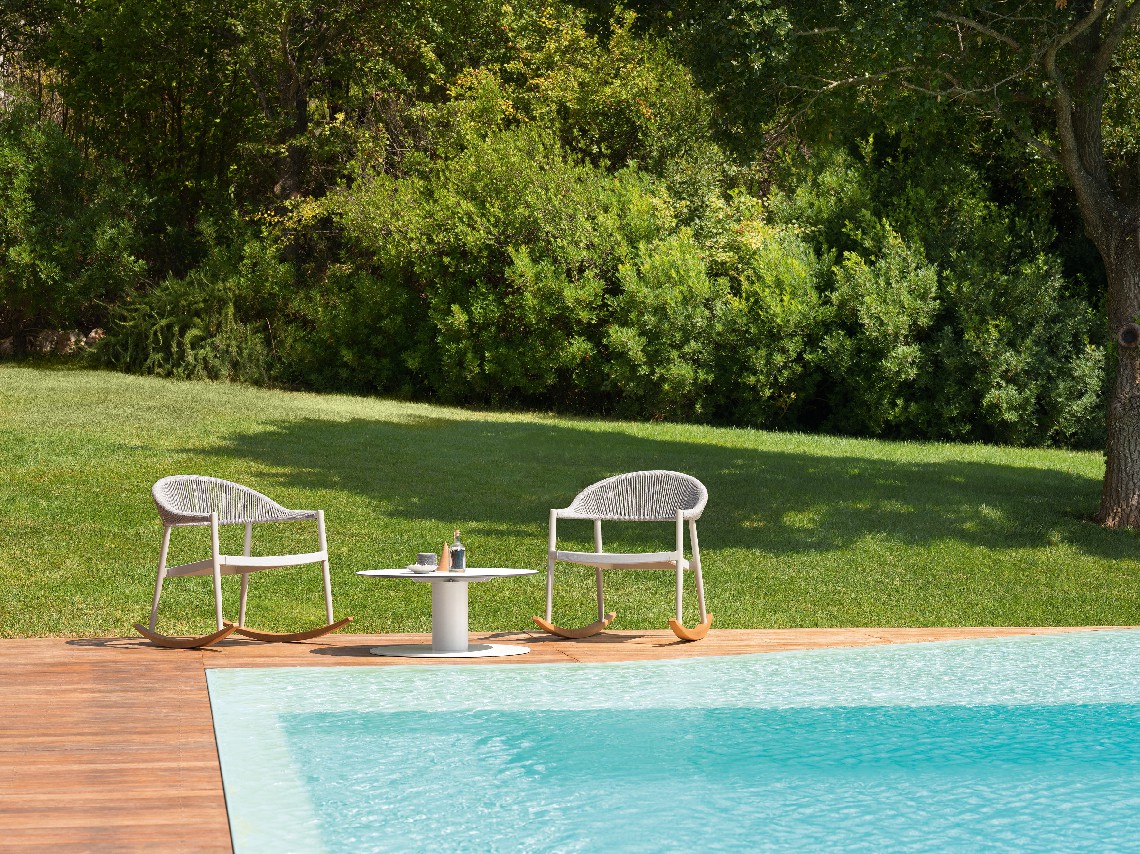 A spacious top allows the support of numerous objects, a quality that makes the Belt table a widely used complement in poolside relaxation areas and lounge bars serving cafeteria and open-air aperitifs.
