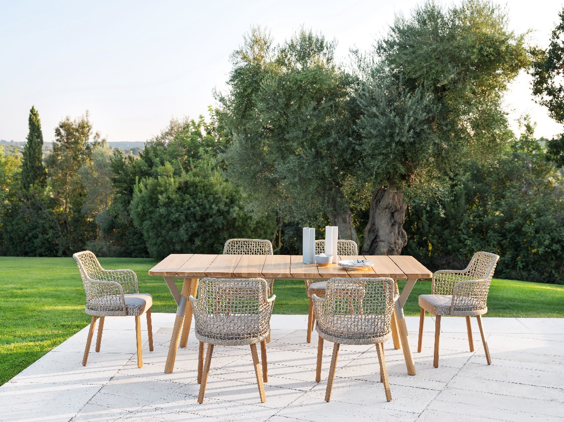 Available in a fixed and extendible version, Link manages to interpret always different moods, either of natural inspiration, inside gardens or terraces overlooking the sea, or more urban, in verandas and décor of city clubs.