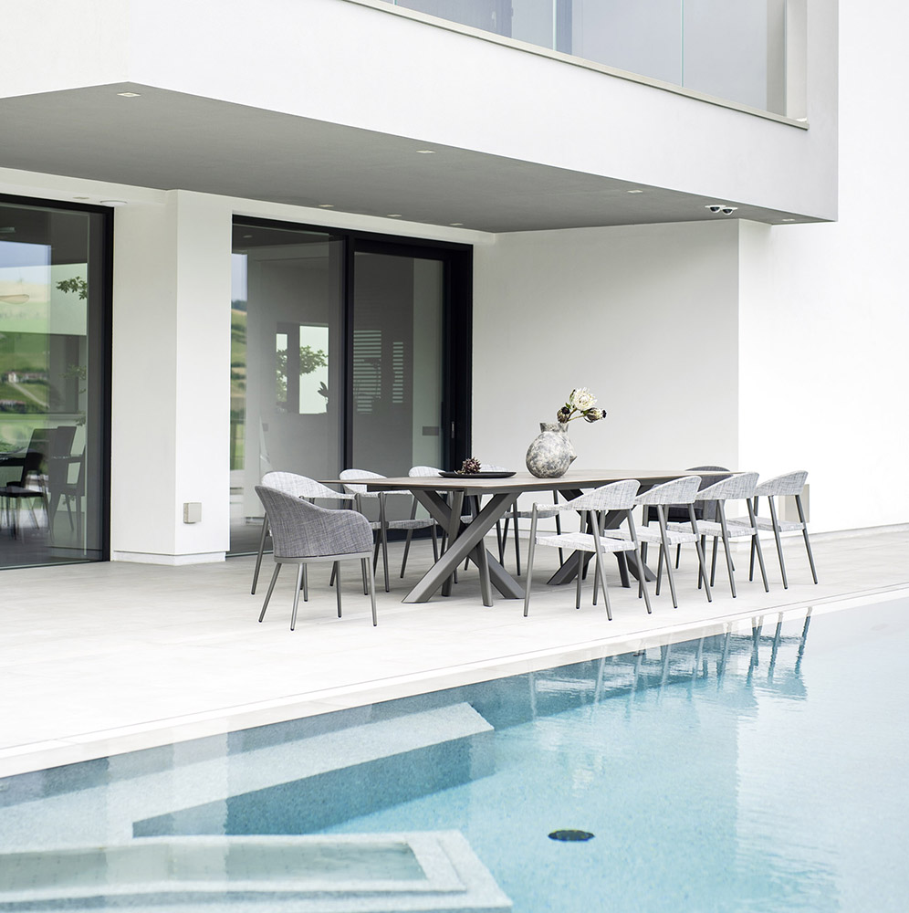 Residential and contract outdoor furniture. Suitable for marine areas.