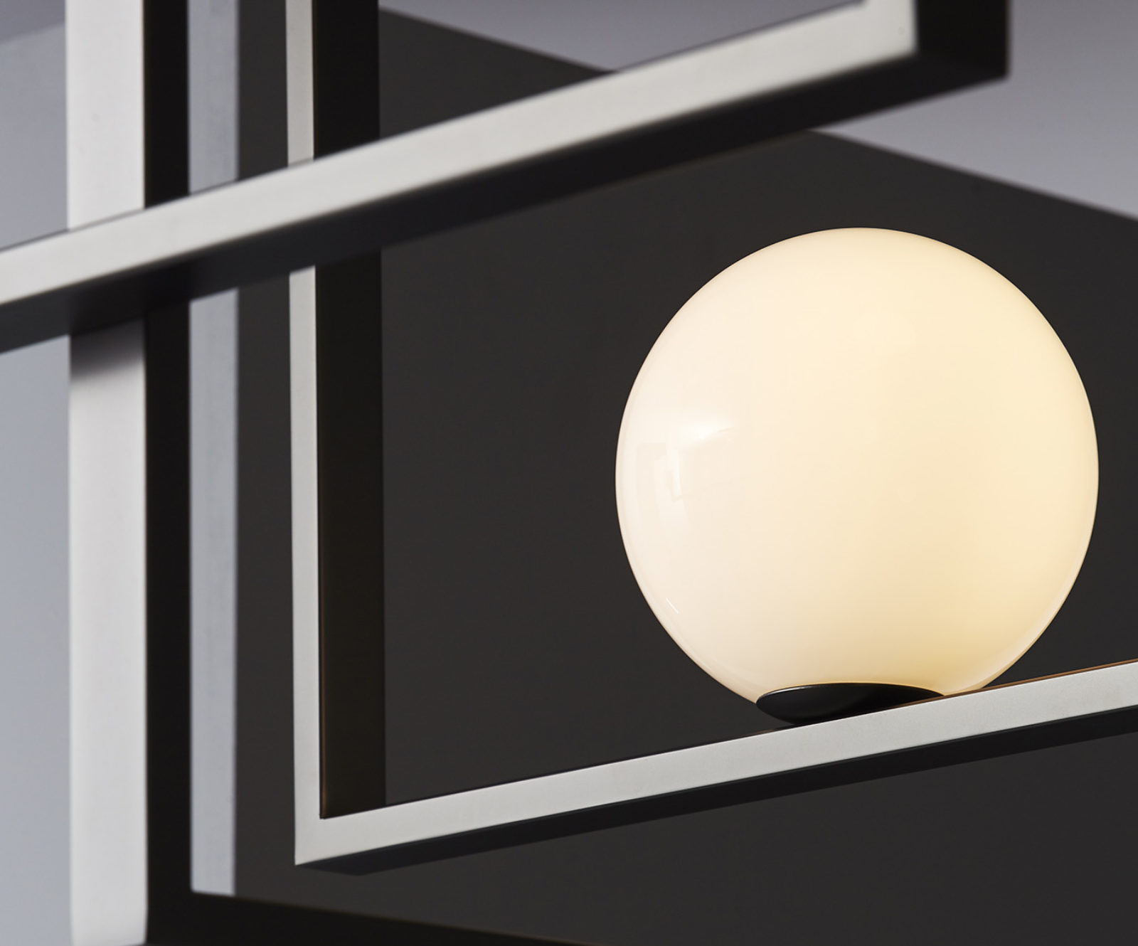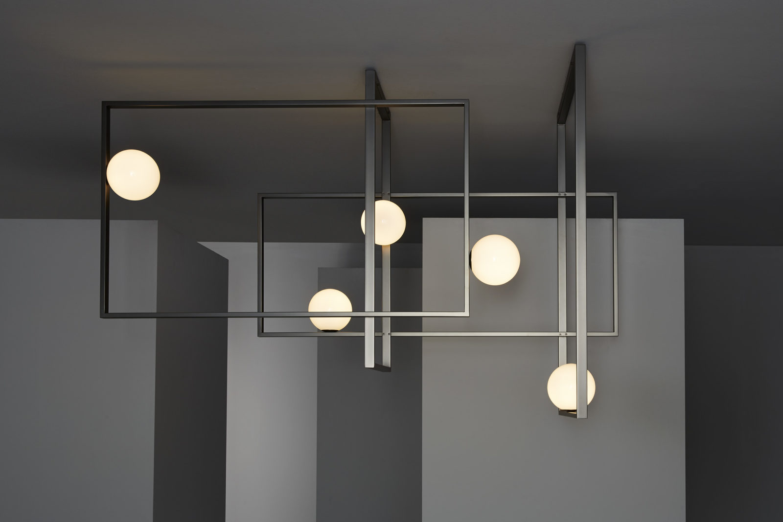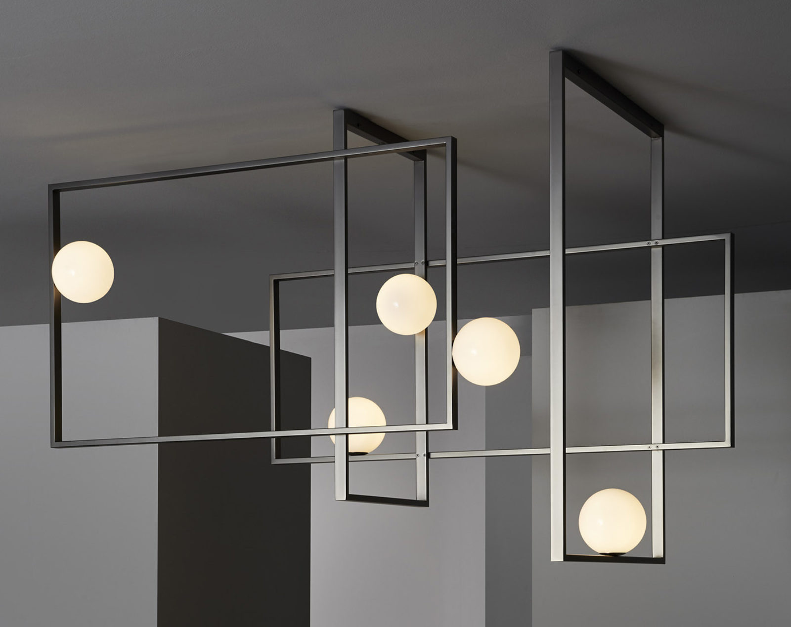 Wall lamp with diffused light. Burnished natural brass, matte black nickel, polished black nickel or polished gold structure and white Murano blown glass diffusers.