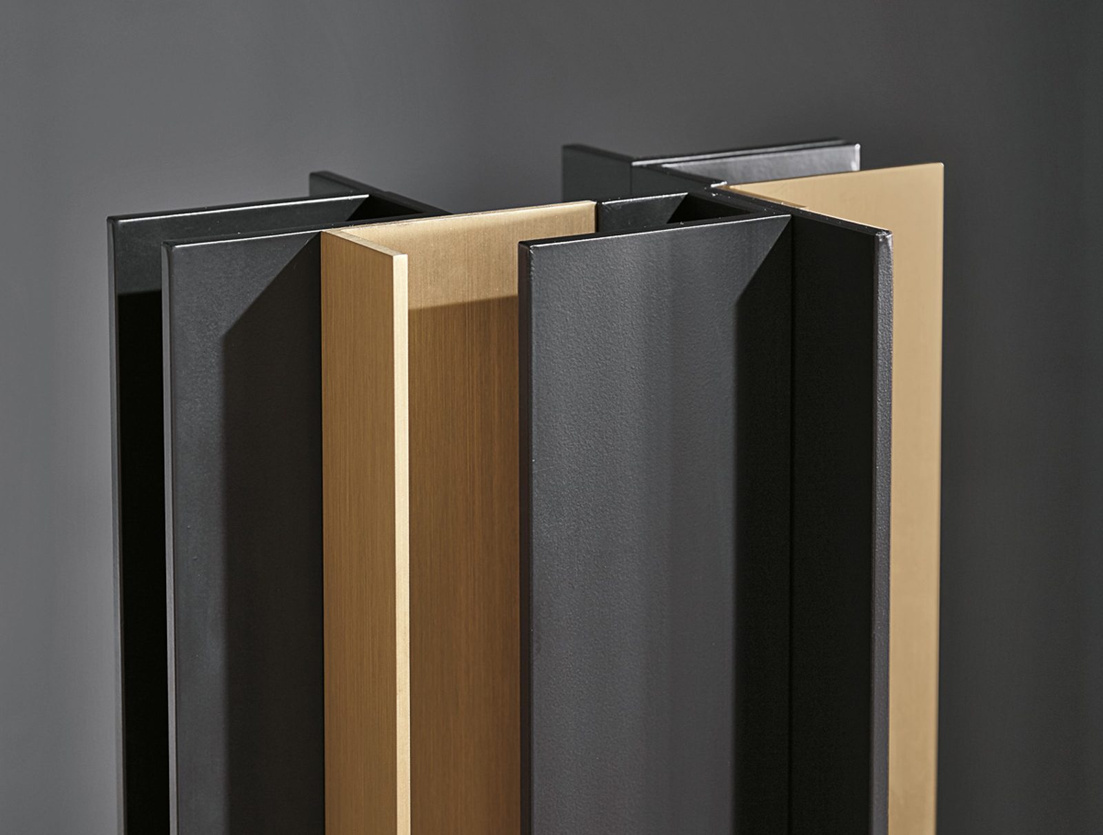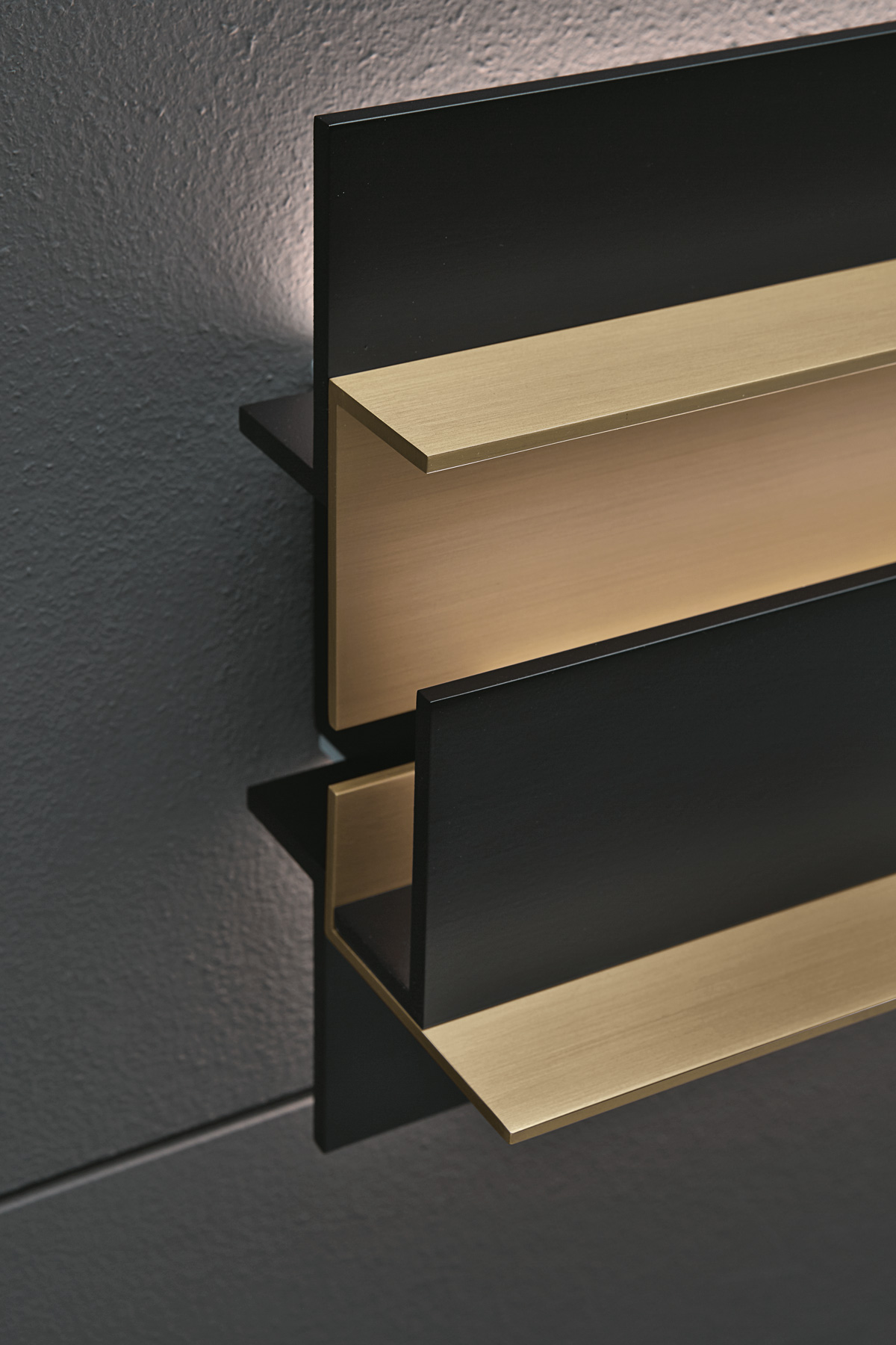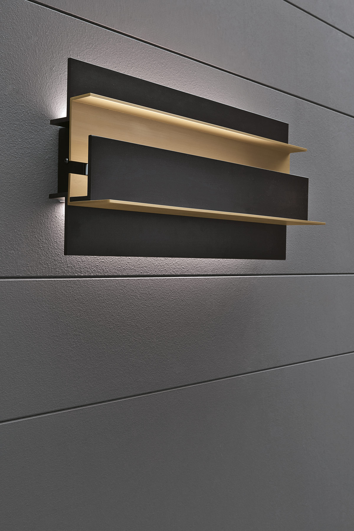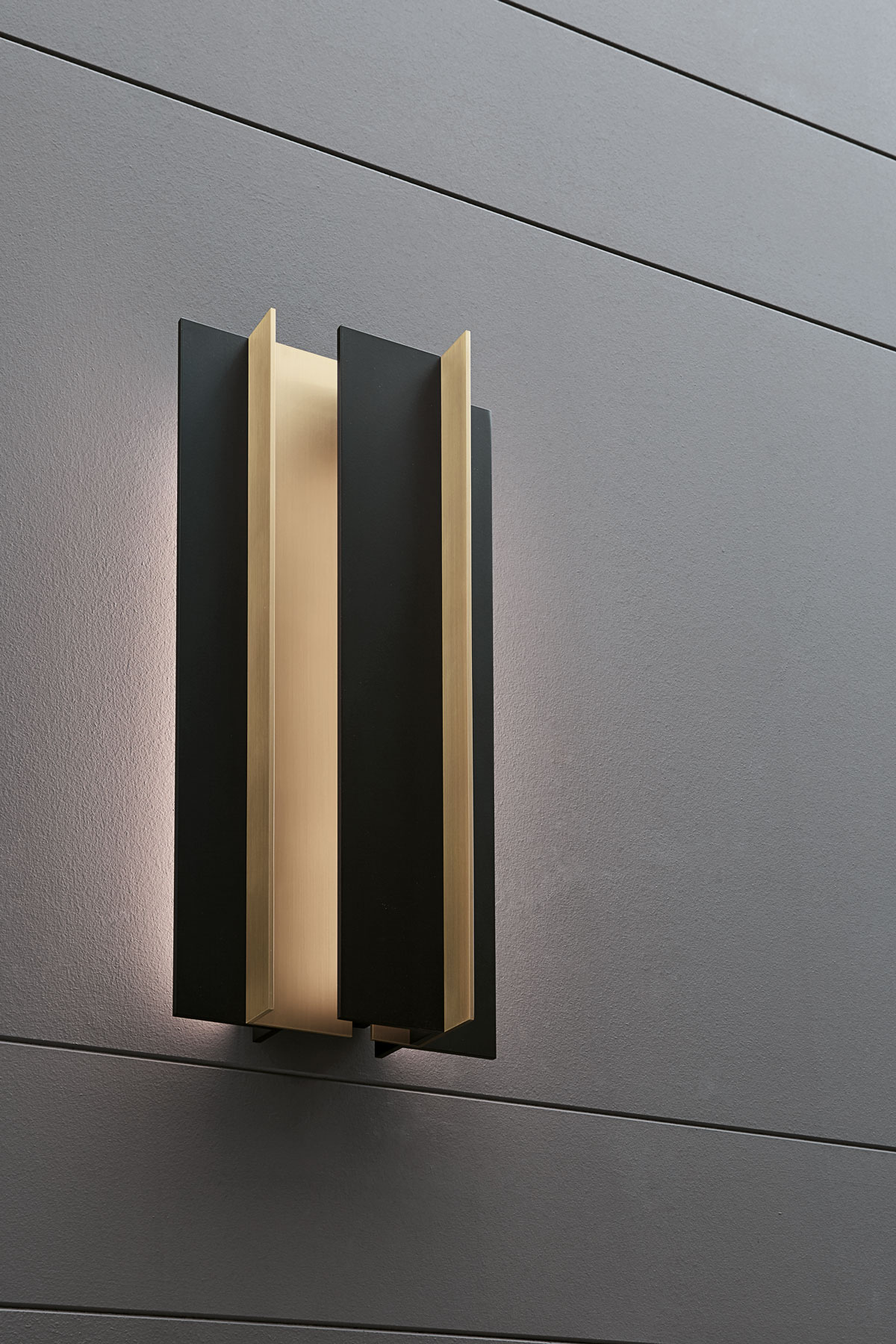 Wall lamp with indirect light. Light burnished brass and matte black structure.