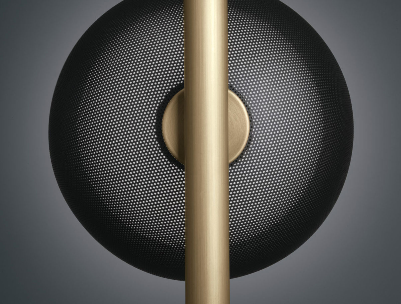 Wall lamp with diffused light. Light or dark burnished brass structure with matte gold or matte black perforated metal lampshade. White Murano blown glass diffuser.