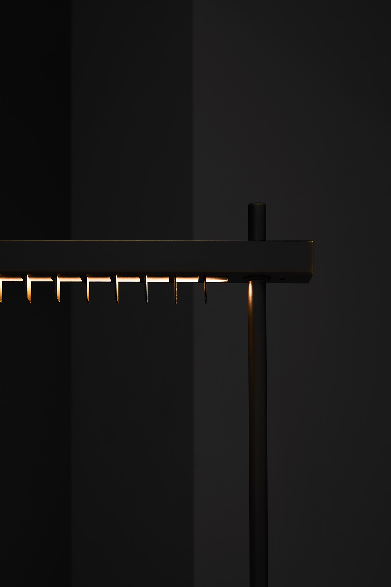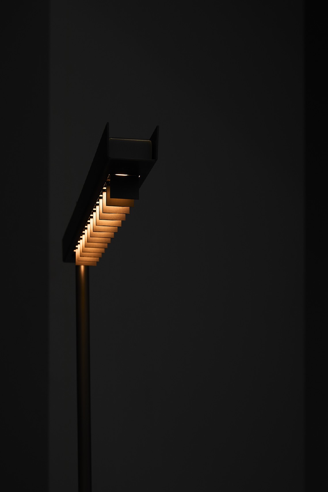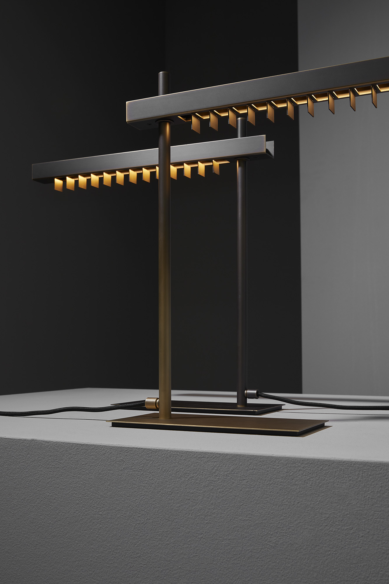 Table lamp with direct downward light. Structure in shaded burnished or dark burnished brass.
