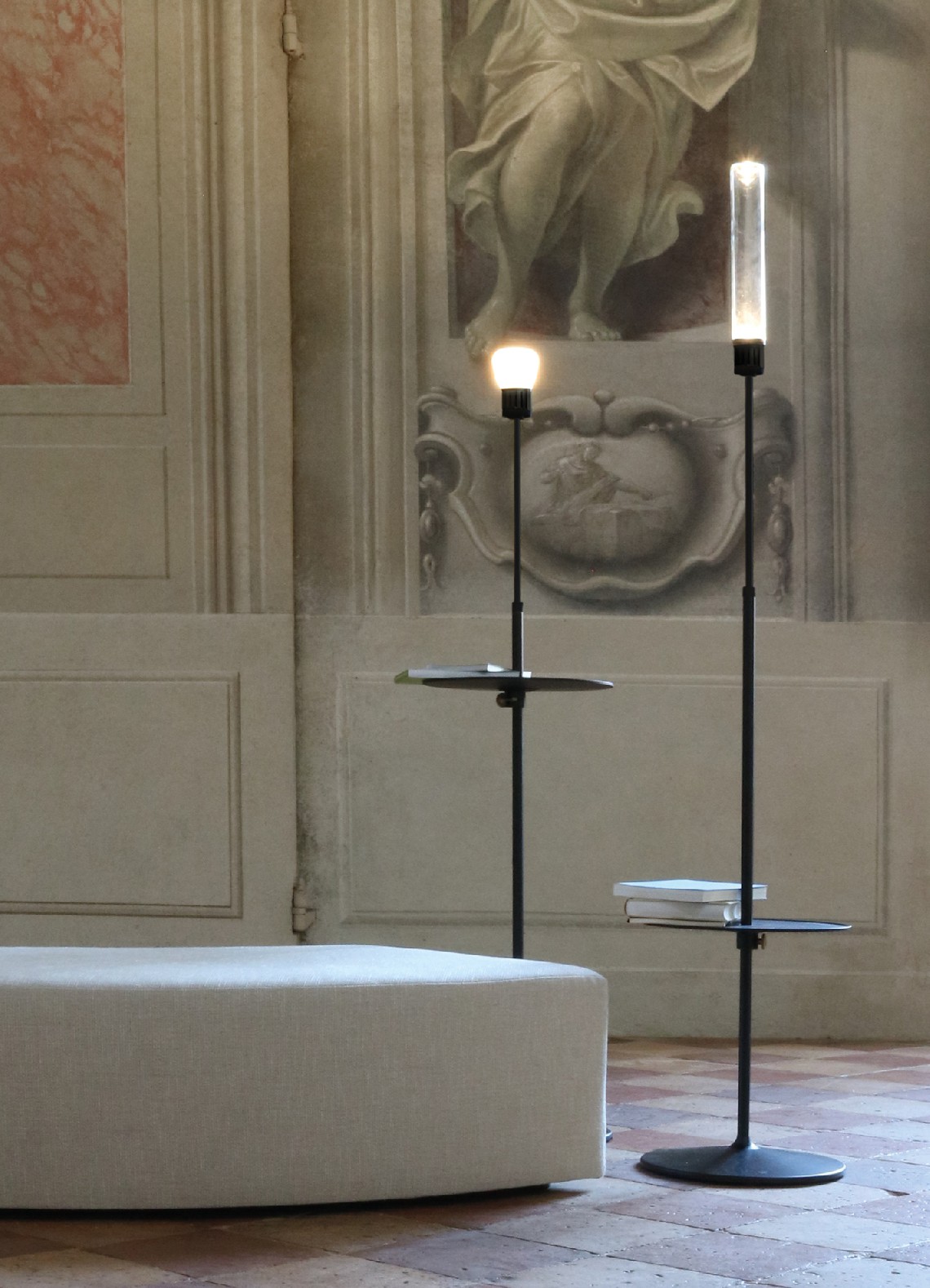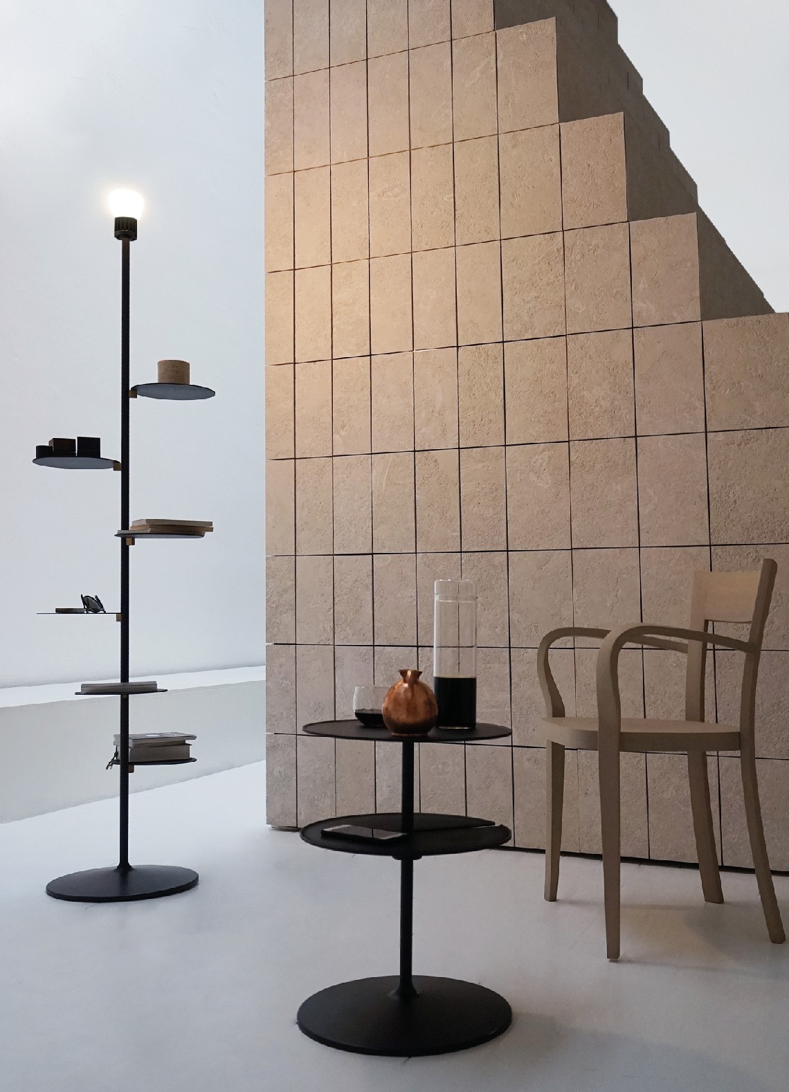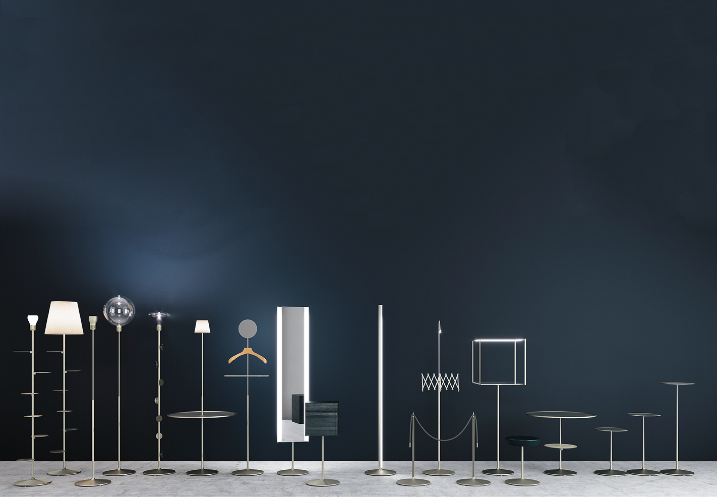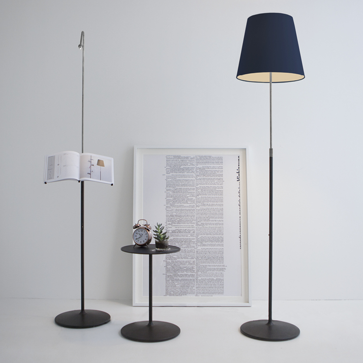 dry location floor standing modular system for indoor use. made of oxidised aluminium, with diameter 350mm/13.8’’ steel base.