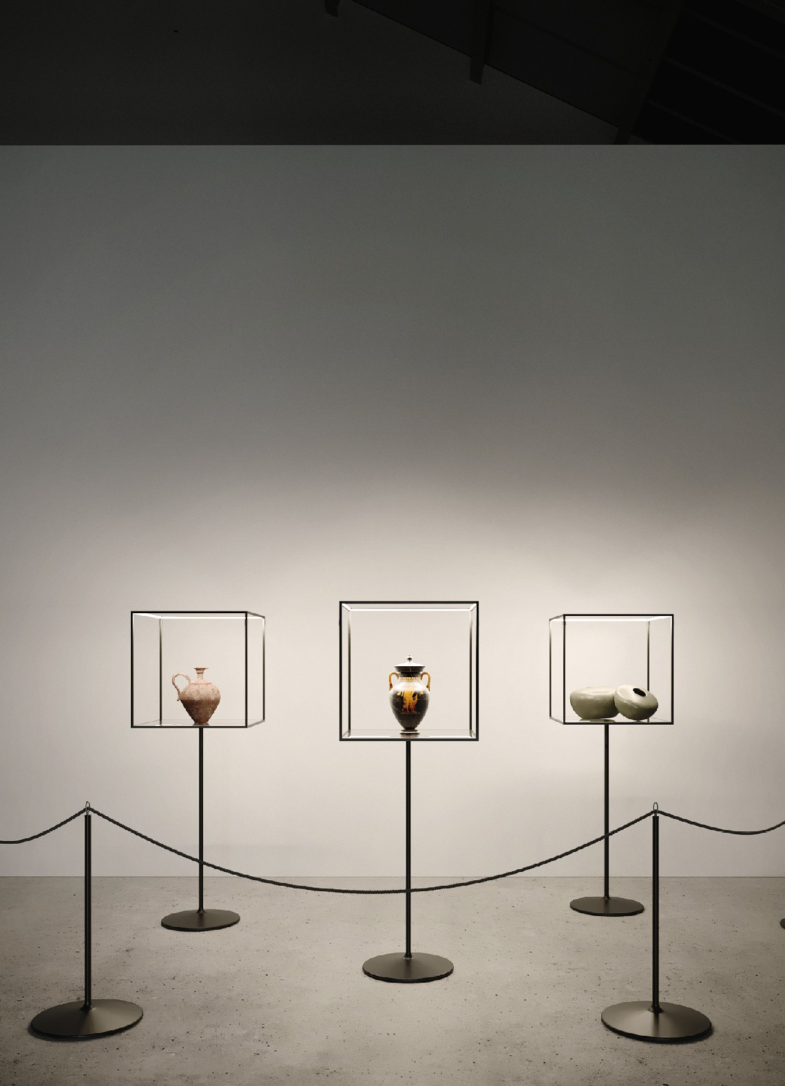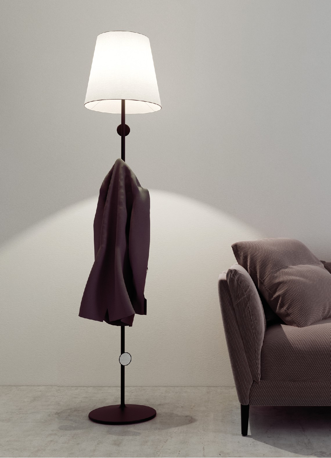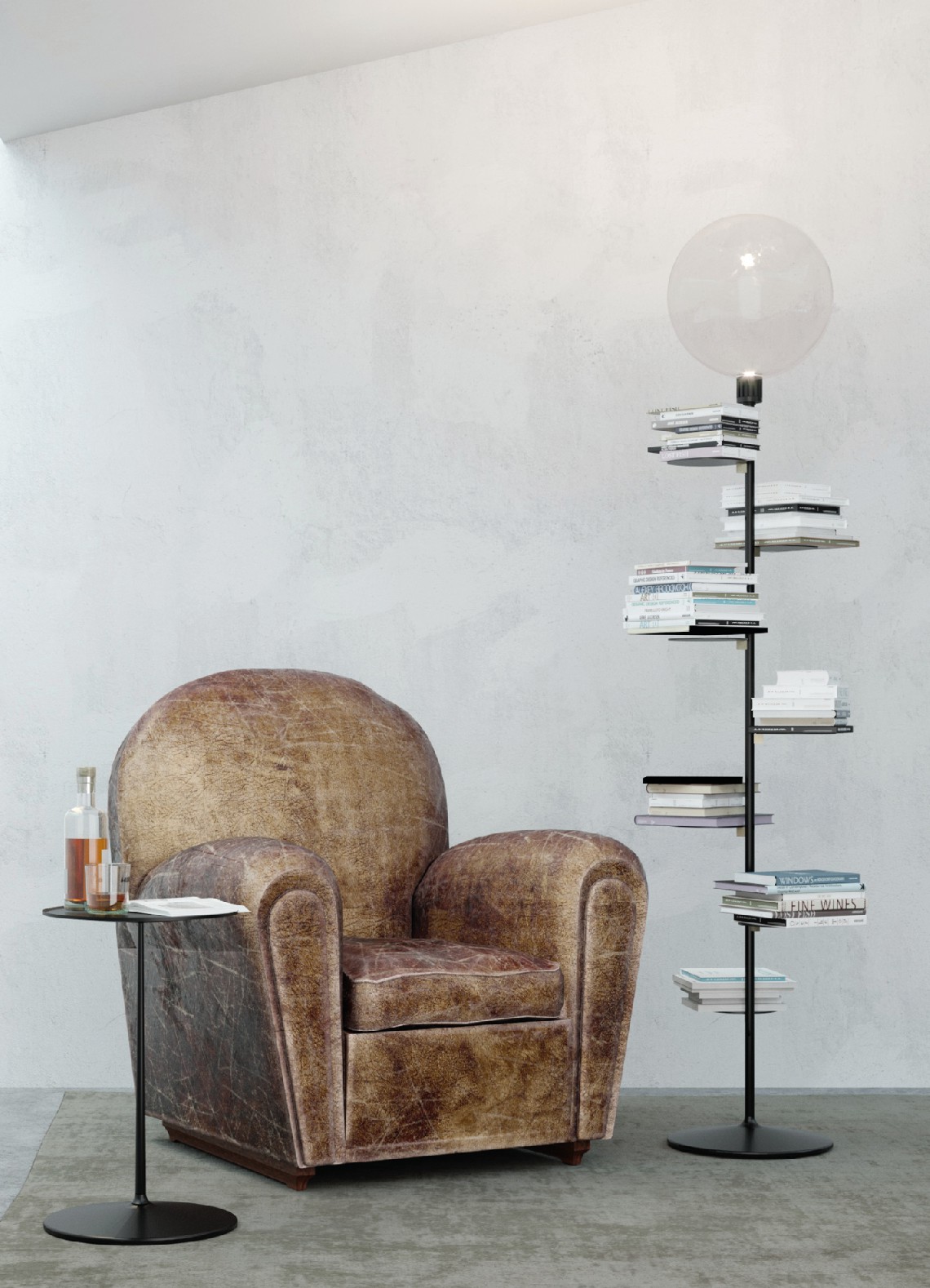 dry location floor standing modular system for indoor use. made of oxidised aluminium, with diameter 350mm/13.8’’ steel base.