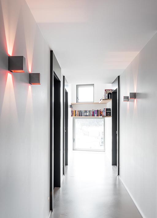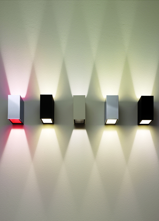 dry location rated wall and ceiling light fitting for indoor use. made of a 100x100x50mm/3.9x3.9x2’’ extruded, chrome or powder coated aluminium external body, with an internal bi-directional optic for diffuse light. wired with 2700K Ra95 2x5.6W 2x544lm or 3000K Ra95 2x5.6W 2x586lm led source. 120V 50-60Hz power supply included. external finishes: polished chrome aluminium, ivory, moka or bianco V. internal finishes: red painted, nero55, ivory or bianco V.
