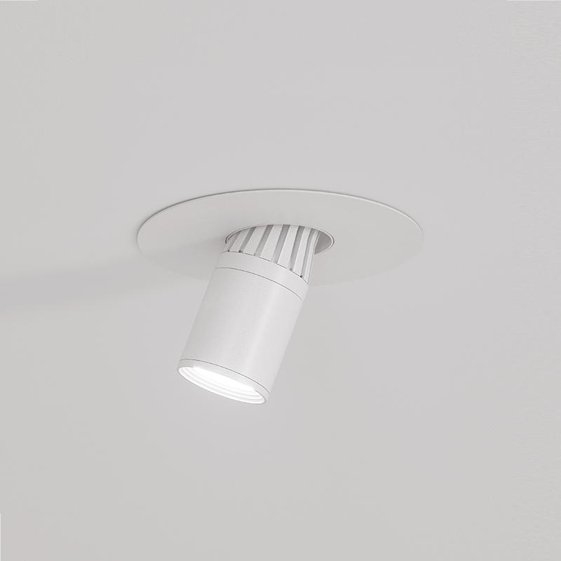 damp location rated recessed light fitting for indoor use. made of oxidised and powder coated or chrome aluminium. the special system of height adjustable wings ables the installation on 10mm/0.4’’ to 30mm/1.2’’ thick surfaces. versions: dca incasso fisso diameter ?210mm/8.3’’ recessed of 80mm/3.1’’ with cylindrical transparent glass, beam 140°, dca incasso orientabile diameter ?210mm/8.3’’ recessed of 135mm/5.3’’ with 18° 40° 58° interchangeables optics, adjustable by 360° on the vertical axis and by 35° on the horizontal axis. wired with 2700K, 3000K or 3000Vb K (designed for high fashion industry) Ra98 led source with les9 up to 19.5W 1110lm and les19 up to 14W 1580lm . 120V 50-60Hz power supply not included, to be installed remotely. components: round bezel diameter ?165mm/6.5’’, square bezel 165x165mm/6.5x6.5’’. accessories: blank square bezel 165x165mm/6.5x6.5’’, fully concealed housing. finishes: my bianco, nero55 and polished chrome.
