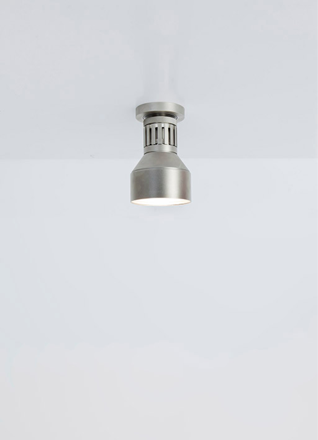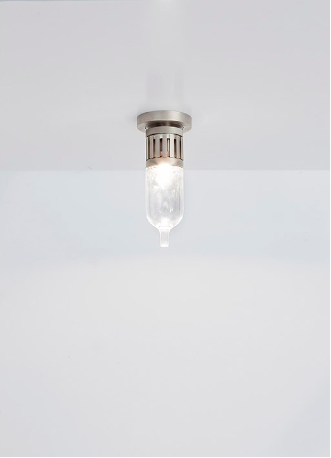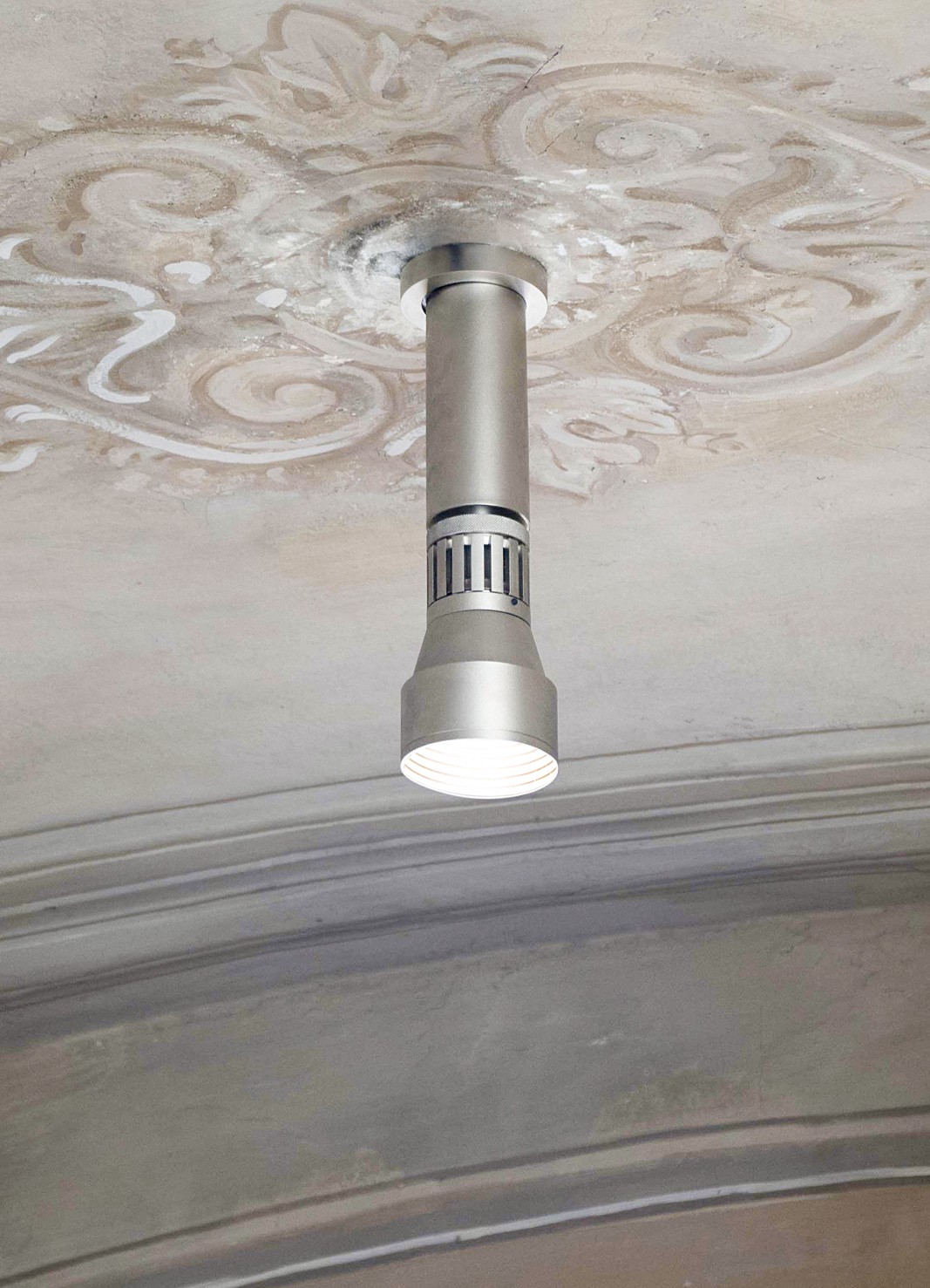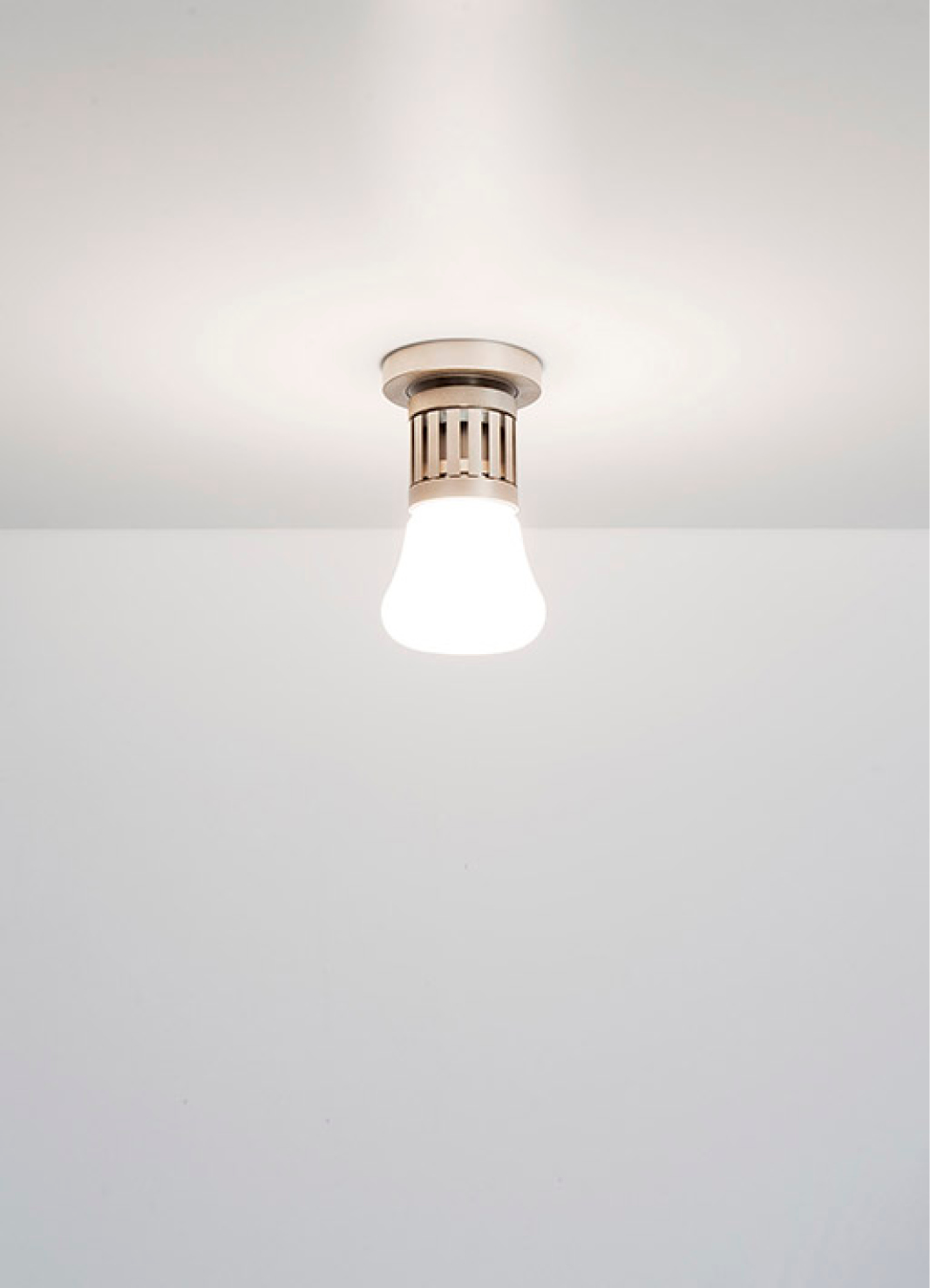 damp location rated ceiling mounted light fitting for indoor use made of oxidised extruded aluminium. versions with power supply included, to be installed remotely or with integrated power supply: n55 soffitto with ajp01 decorative bulb, n55 soffitto with dc02 decorative bulb, n55 soffitto with mn01 decorative bulb, n55 soffitto with pz01 decorative bulb, n55 soffitto with pz03 decorative bulb, n55 soffitto with wm01 decorative bulb. wired with propulsore dinamico n55 55/500 les19 14W/500mA 1580lm Ra98 1 step macadam. the specific n55 lamp-holder allows to change three types of light bulbs: classic, decorative and technical. any irregularities in the glass are a guarantee of an unique product, blown and entirely hand crafted by master glassmakers. the integrated 120V 50-60Hz power supply version has a smart control which automatically provides the suitable current according to the type of propeller. the same power supply can also be ordered separately for the other versions. accessories: fully concealed housing for plasterboard and brickwork, end caps, gasket with light trap for transparent glass; honeycomb louvre, elliptical lens and anti-glare for technical bulbs. classic and decorative bulbs with transparent, sanded and milk white glass. finishes: argento hacca, nero55. customize your light visit www.Viabizzuno.com