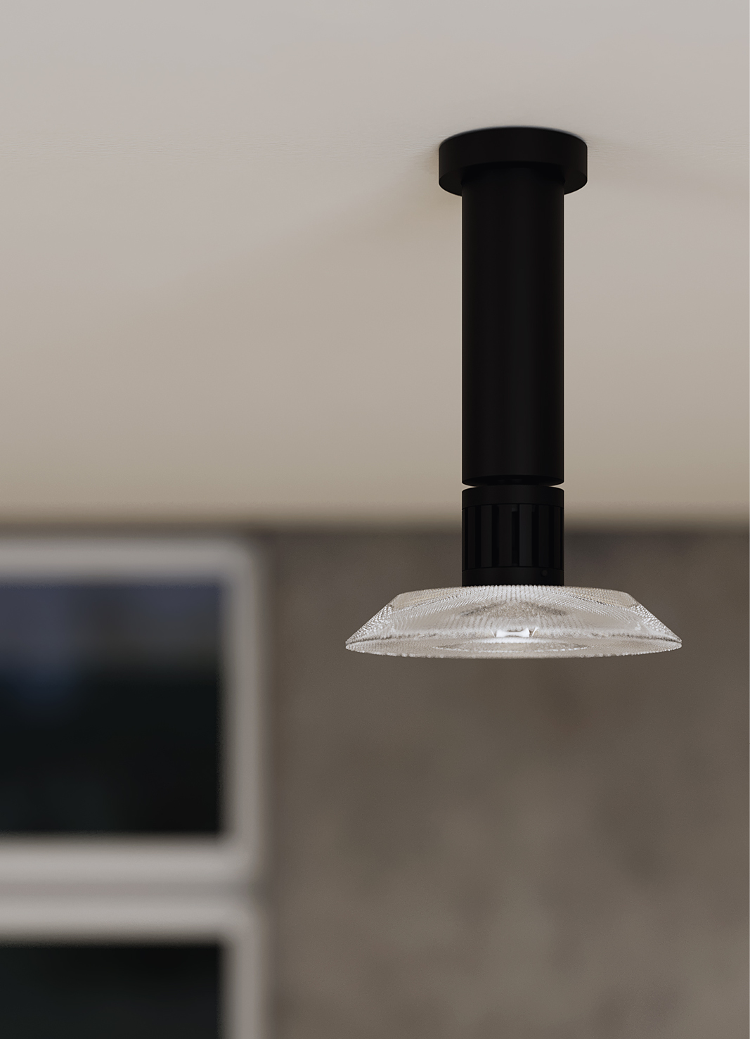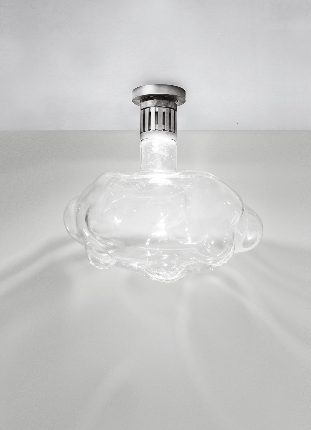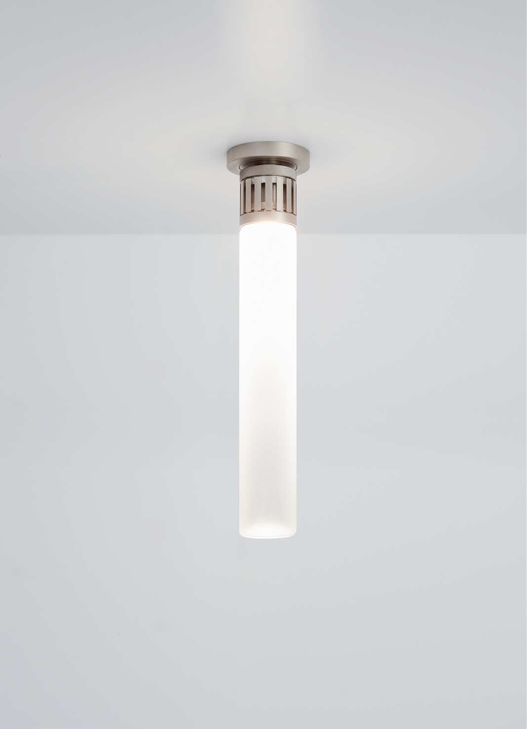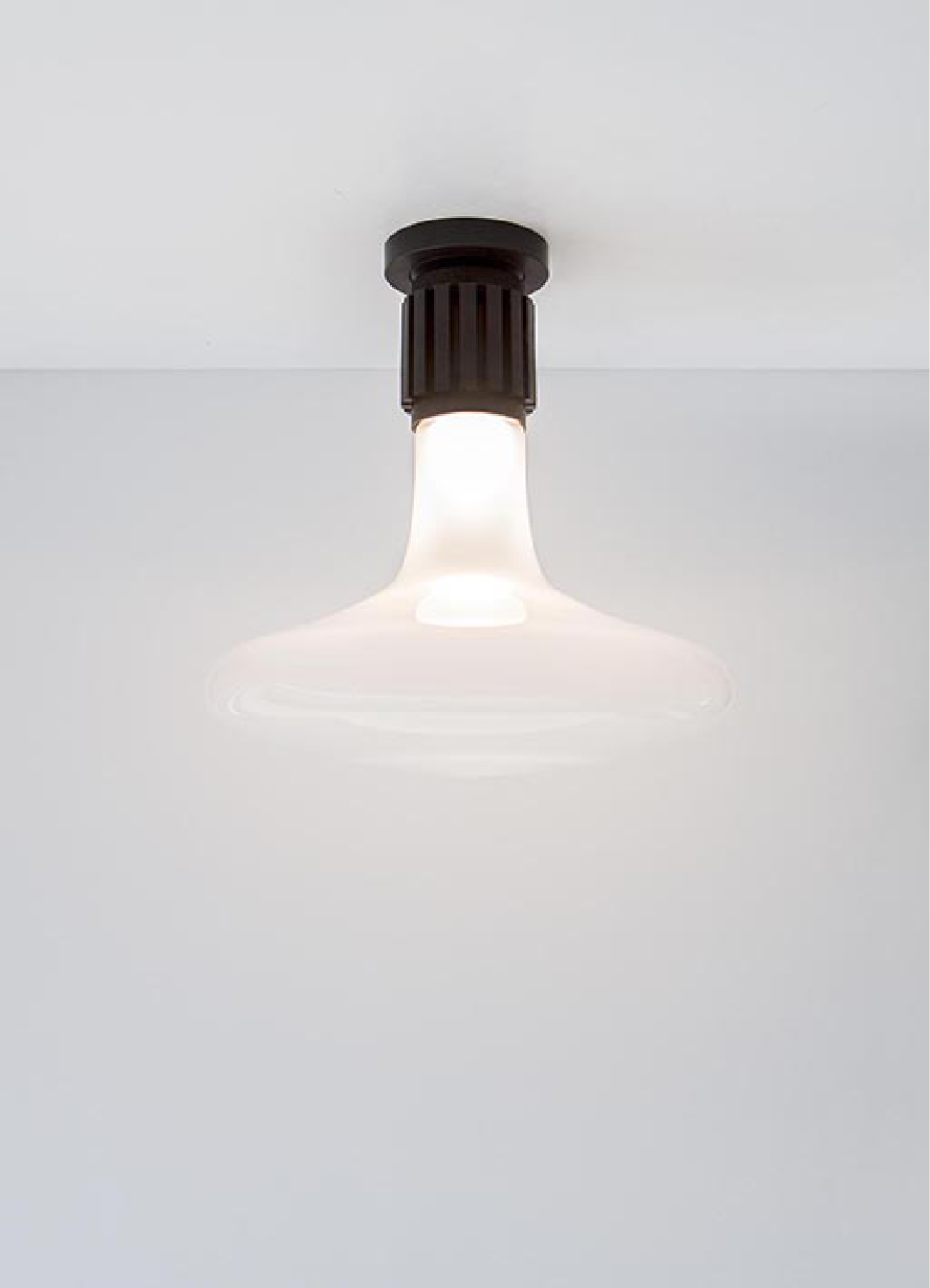 damp location rated ceiling mounted light fitting for indoor use made of oxidised extruded aluminium. versions with power supply included, to be installed remotely or with integrated power supply: n55 soffitto with ajp01 decorative bulb, n55 soffitto with dc02 decorative bulb, n55 soffitto with mn01 decorative bulb, n55 soffitto with pz01 decorative bulb, n55 soffitto with pz03 decorative bulb, n55 soffitto with wm01 decorative bulb. wired with propulsore dinamico n55 55/500 les19 14W/500mA 1580lm Ra98 1 step macadam. the specific n55 lamp-holder allows to change three types of light bulbs: classic, decorative and technical. any irregularities in the glass are a guarantee of an unique product, blown and entirely hand crafted by master glassmakers. the integrated 120V 50-60Hz power supply version has a smart control which automatically provides the suitable current according to the type of propeller. the same power supply can also be ordered separately for the other versions. accessories: fully concealed housing for plasterboard and brickwork, end caps, gasket with light trap for transparent glass; honeycomb louvre, elliptical lens and anti-glare for technical bulbs. classic and decorative bulbs with transparent, sanded and milk white glass. finishes: argento hacca, nero55. customize your light visit www.Viabizzuno.com