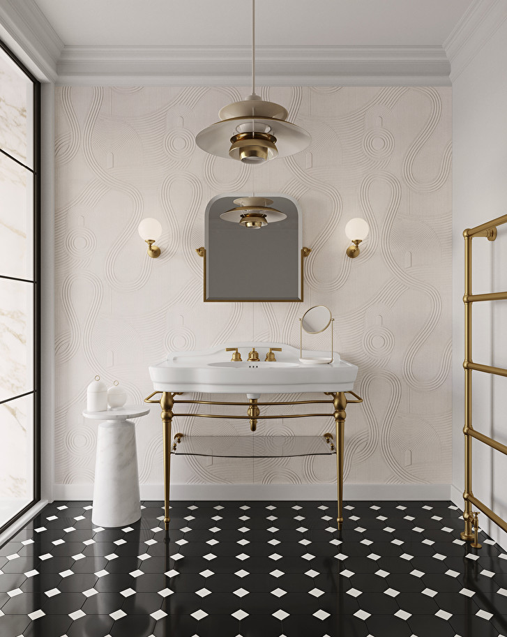A collection of truly showstopping large ceramic slabs (120x240 cm) designed by Marcel Wanders studio as a visual experience that opens up new vistas on the idea of wellness. Available in three shades, they are a remarkable fusion of style and function.
