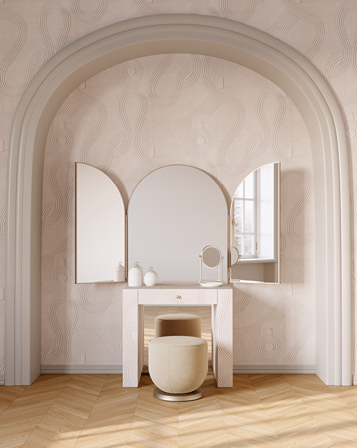 A truly showstopping wallpaper designed by Marcel Wanders studio as a visual experience that opens up new vistas on the idea of wellness. Available in three shades with a vertical and horizontal repeat design. 4800x4800 mm.