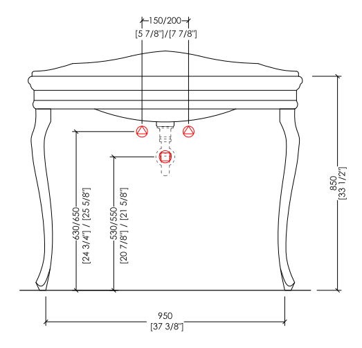The timeless charm of the classic marble consoles revisited for practicality with a fire-clay top, i.e. a ceramic material being extremely durable, non absorbent and pratical to maintain. Legs in white or black fire-clay or in fused aluminium, available in chrome, light gold or polished nickel finishes.