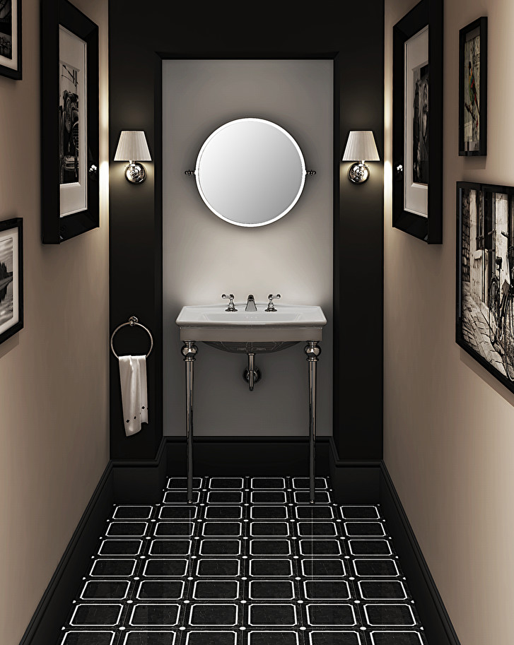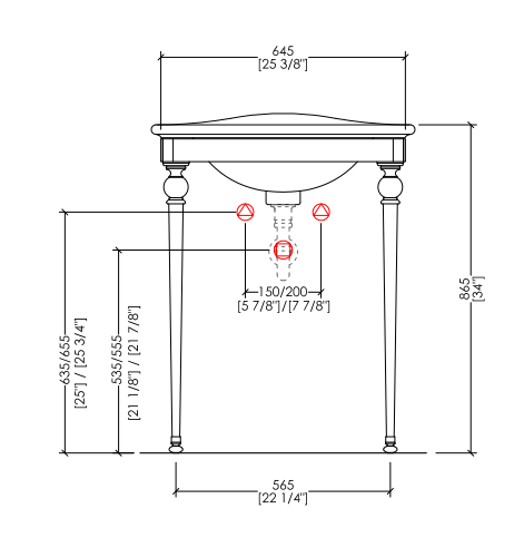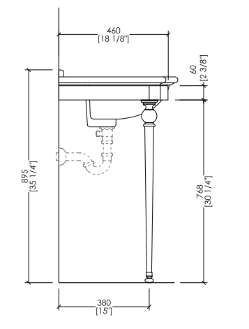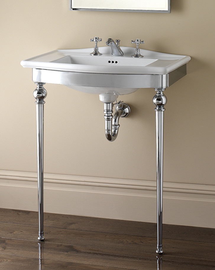 A console inspired by the great tradition of English bathrooms, characterized by an essential design, traced by the clean lines of its taperd legs in turned brass, refined by two spherical elements. It is available in chrome, light gold and polished nickel finishes. It is completed with a large ceramic recessed-basin.