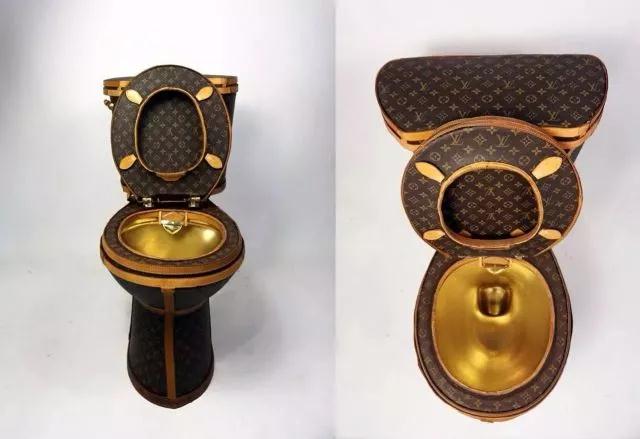 前段時(shí)間,品牌LV的鑲金馬桶在美國杉磯展出,外觀是標(biāo)志性的LV花紋,內(nèi)壁是耀眼的一層鍍金。