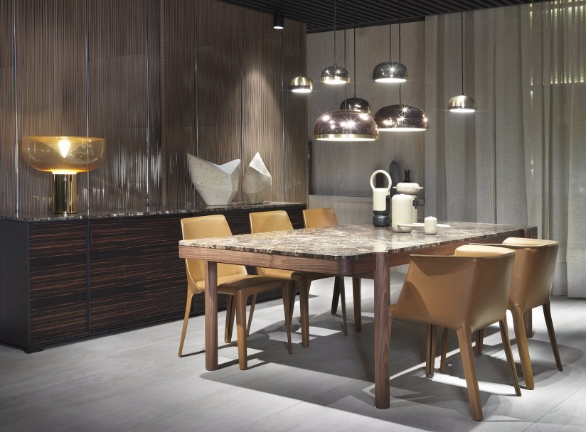設(shè)計師Carlo Colombo(卡洛·科倫波)設(shè)計,實(shí)心的核桃木和白色卡拉拉大理石的結(jié)合的Gustav餐桌,大膽而個性的組成設(shè)計,讓重疊面之間的交互作用更加的明顯,可想而知,這樣的搭配是成功的。