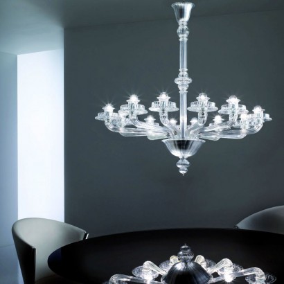 不僅如此,Venini還將工藝發(fā)展到了燈具方面,用精湛的玻璃工藝創(chuàng)造出一盞盞如水晶般耀眼的燈具,讓人難以分清發(fā)光的到底是星光還是燈光!
