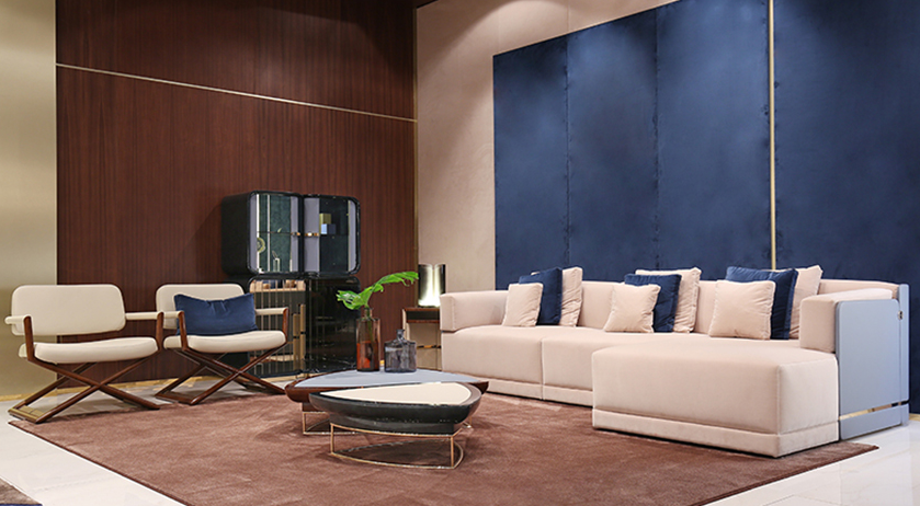 當(dāng)寶藍(lán)碰上灰杏,會(huì)出現(xiàn)一種高級(jí)又干凈的質(zhì)感,高雅的色澤能在平靜的空間中能表現(xiàn)出獨(dú)特的靈魂美。