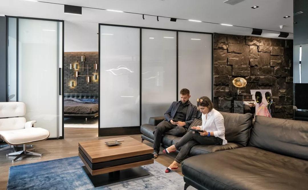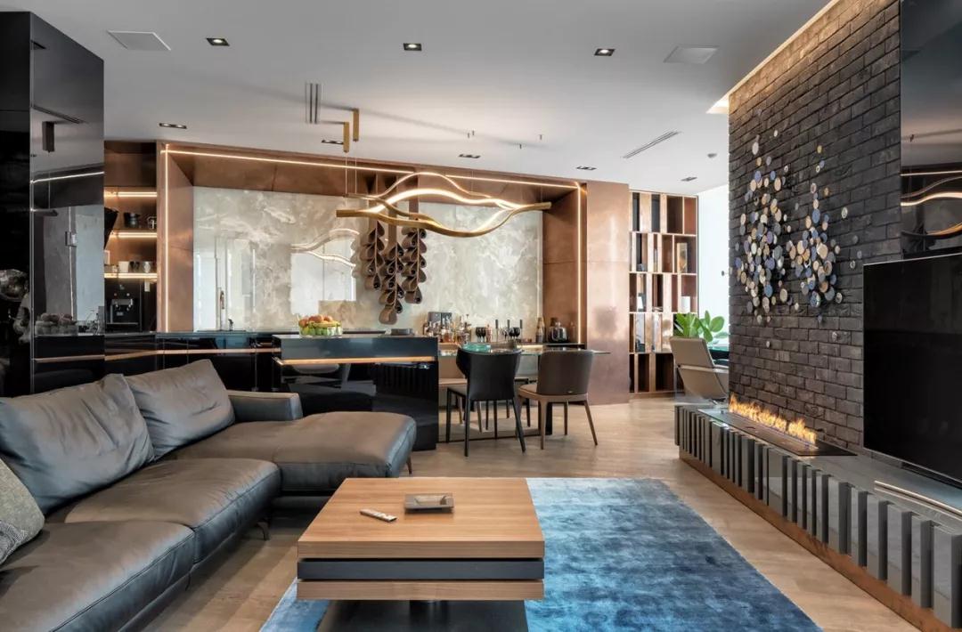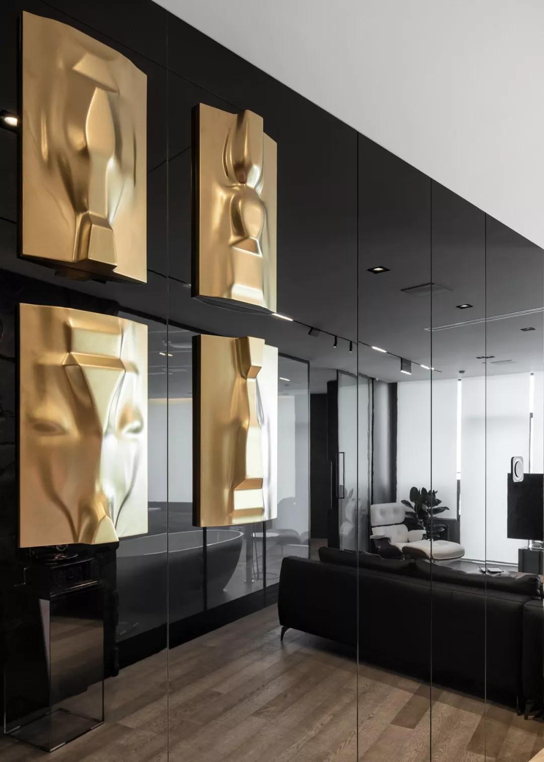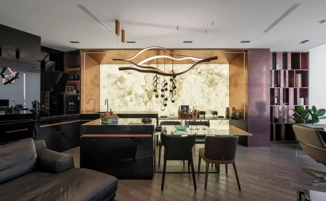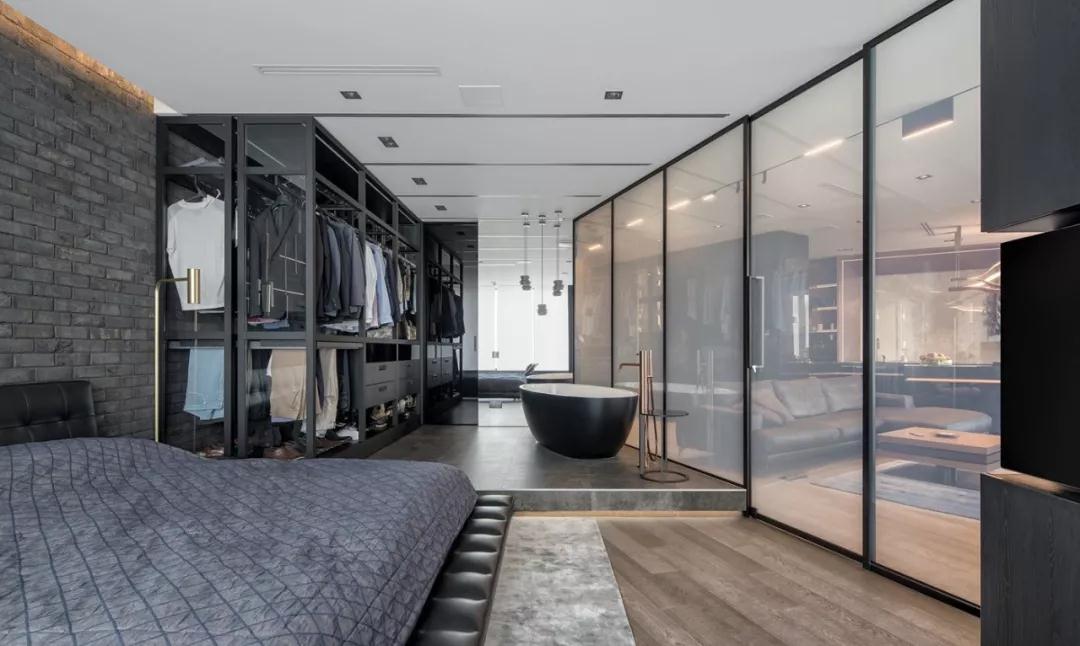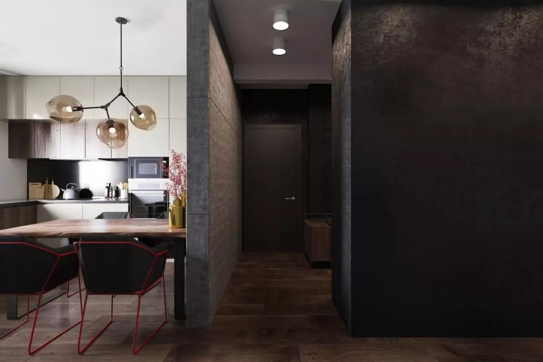 設計師Ivan Yunakov,97㎡黑色的家居融入工業(yè)元素,不僅時尚現(xiàn)代,還質(zhì)感十足,黑色的背景非常有藝術感,帶給室內(nèi)一種炫酷又摩登的視覺效果。