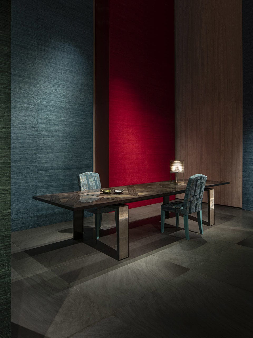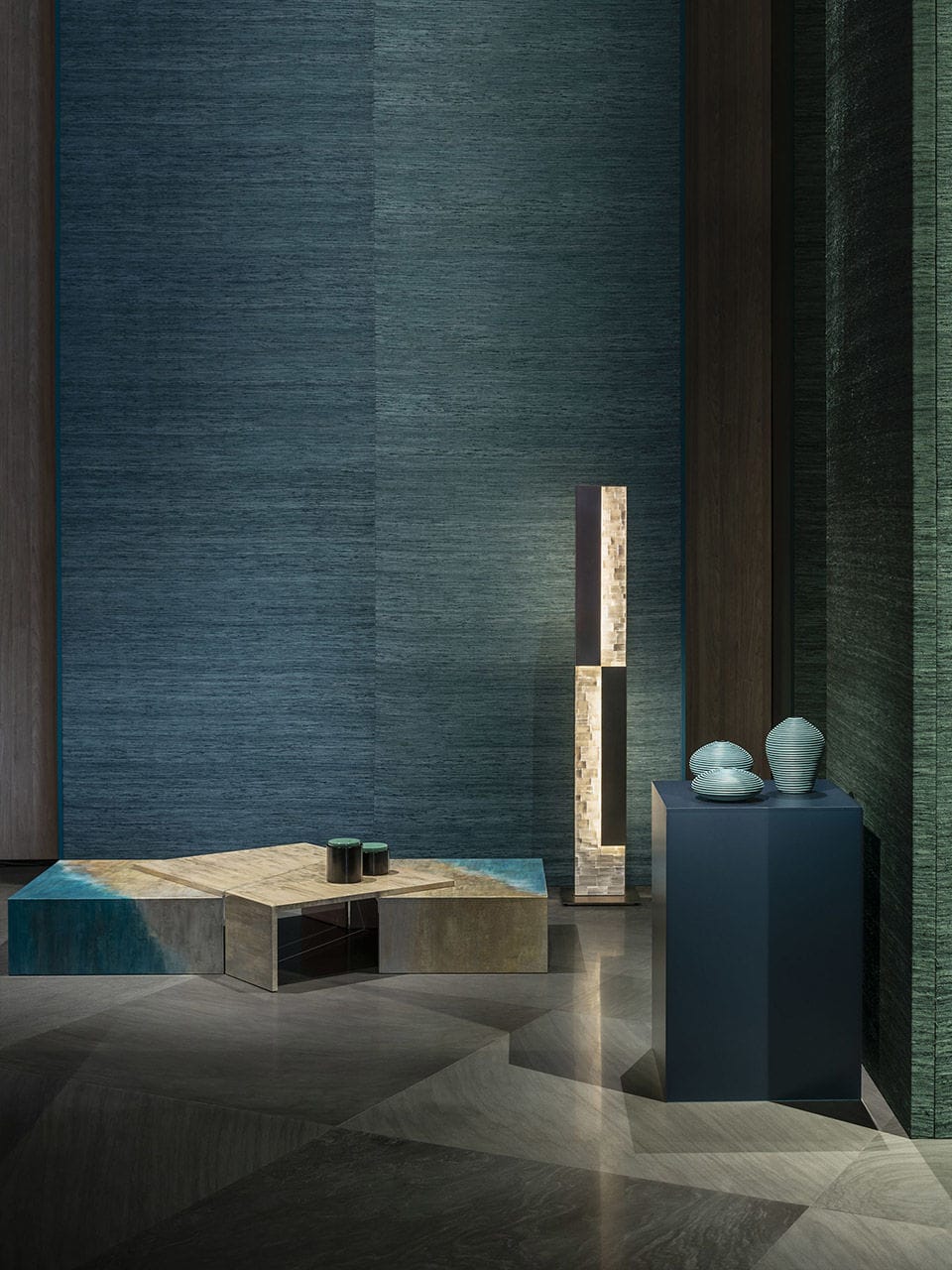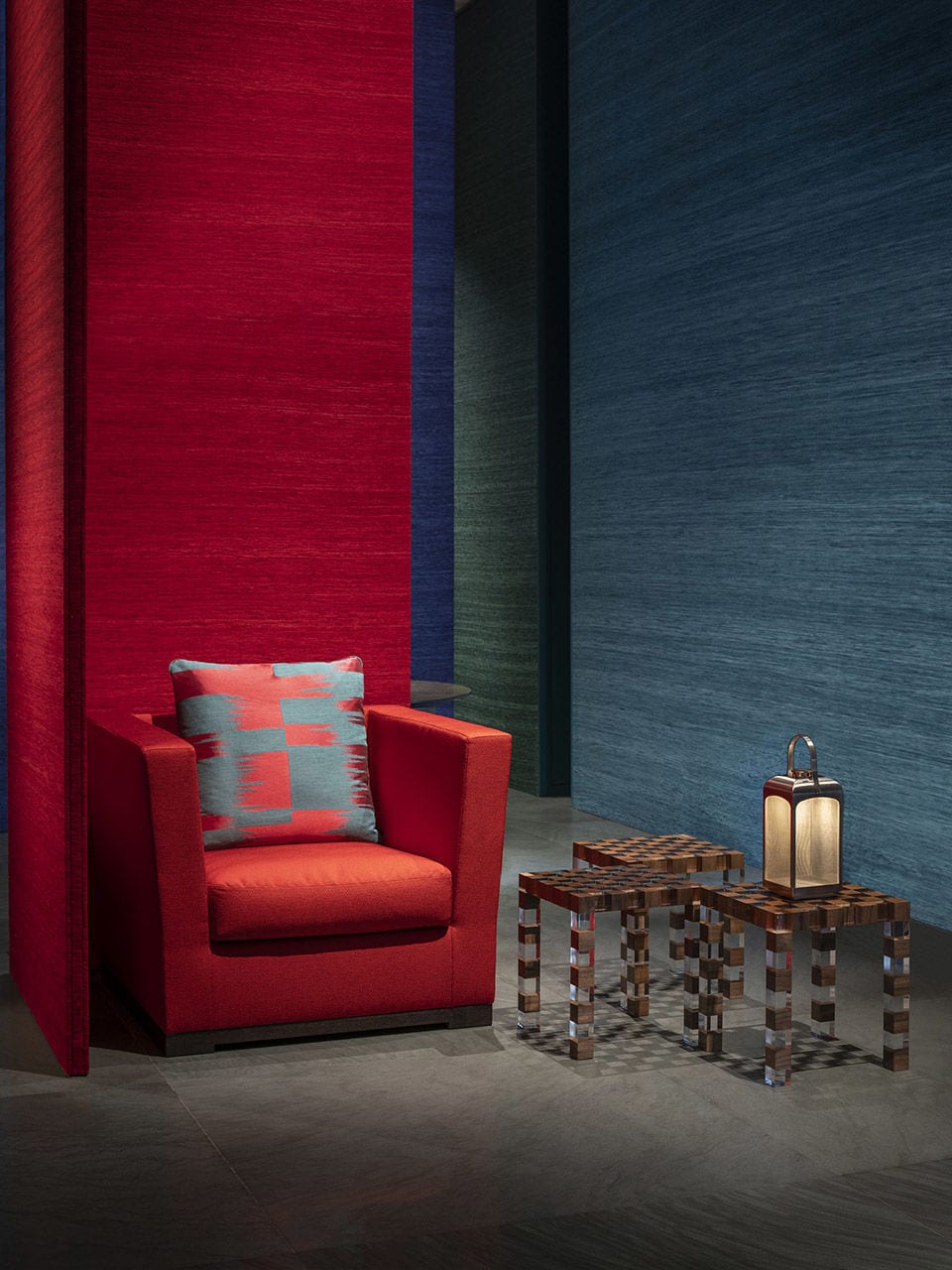 新Armani Casa系列由視覺和材料的明度決定,這是一種介于城市與自然之間的未渡,將各種材料的精彩組合和大膽協(xié)調(diào)的色彩的使用,其基本色調(diào)為紅色、靛藍(lán)色、綠色和驚人的汽油綠色。