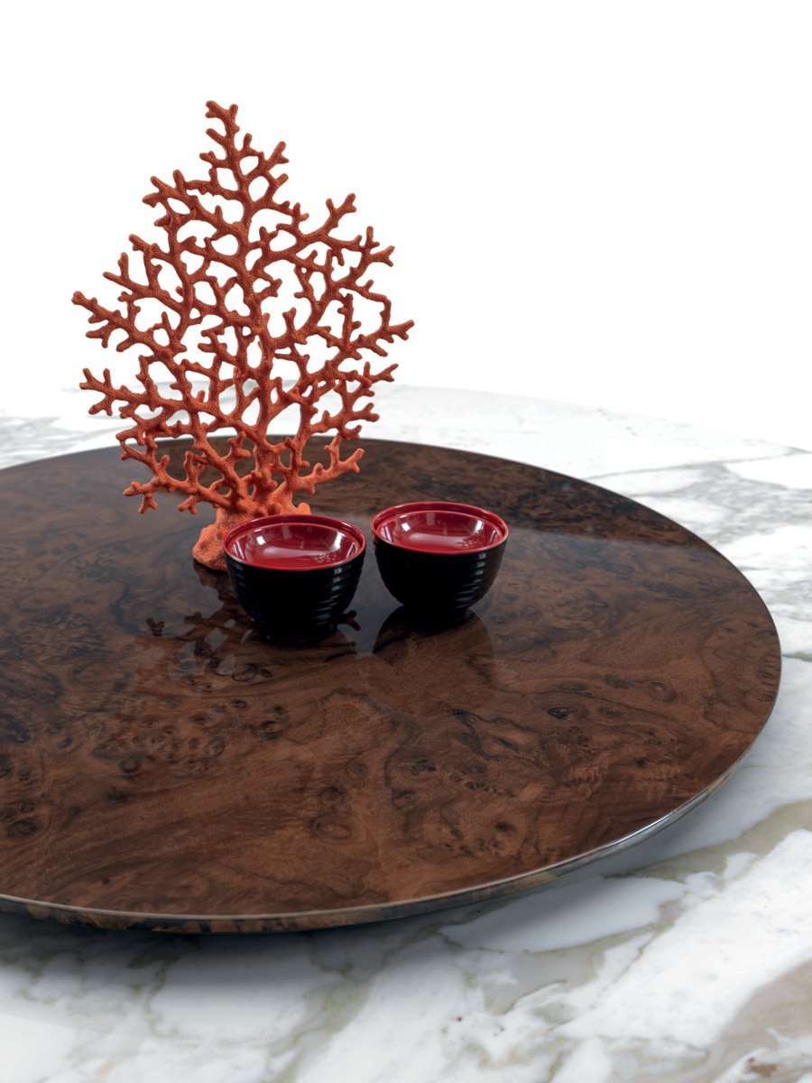 這張桌子的設(shè)計(jì)相較于一般的餐桌設(shè)計(jì),更多了許多獨(dú)特的心機(jī)。三只桌角的的設(shè)計(jì)也十分特殊,桌腳的表面用上等皮革包裹,不規(guī)則桌面可配備任意不同的稀缺大理石,根據(jù)自己的風(fēng)格和喜好來決定材質(zhì)。