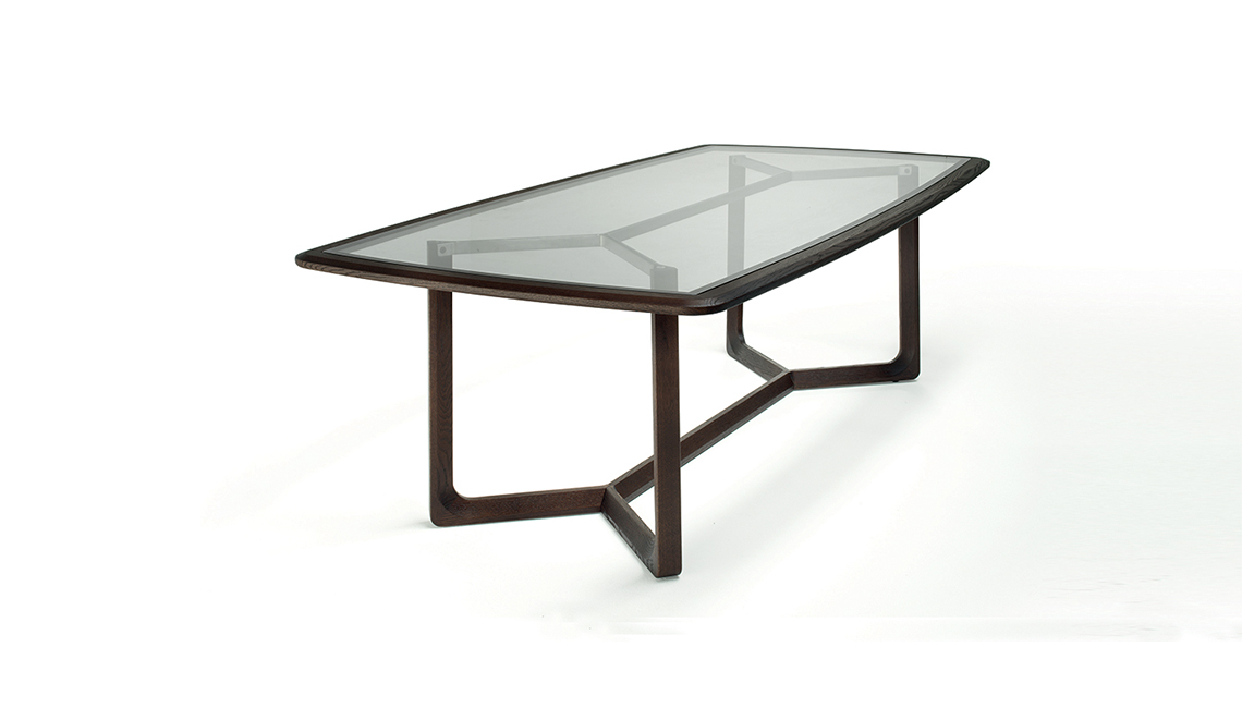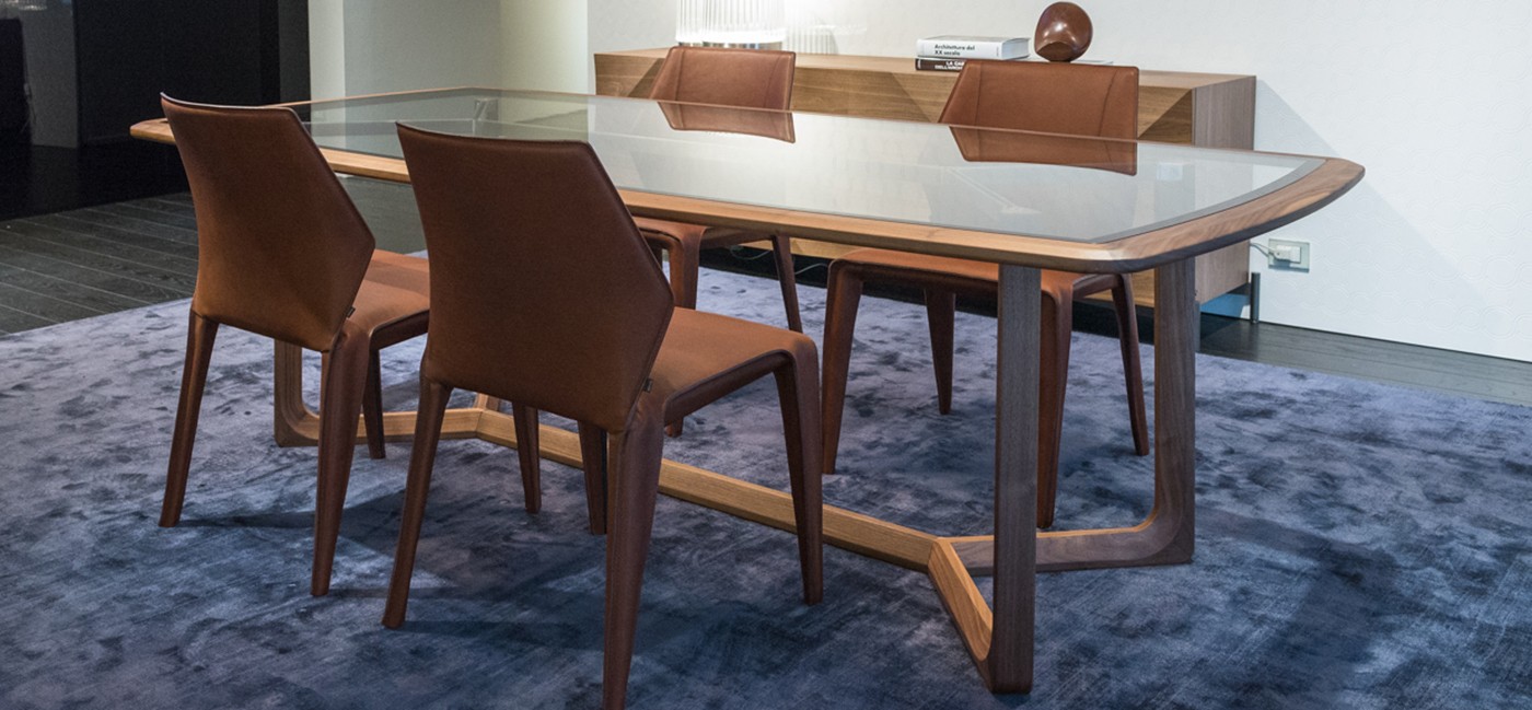 除此之外,NATUZZI2018新品還設(shè)計了餐桌,透明玻璃面板結(jié)合木質(zhì)支架,在底部桌角的設(shè)計里加入了小心機,讓看起來平常的設(shè)計大放光彩,提高了氣質(zhì)和顏值。