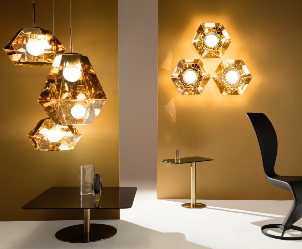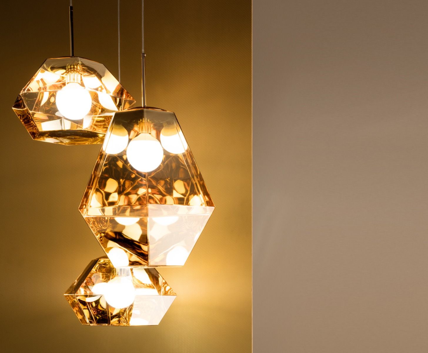 TOM DIXON將切割技術與燈具設計完美的融合在了一起,一個個如同鉆石版閃耀的吊燈,在黑夜中如同星星一般明亮美好。