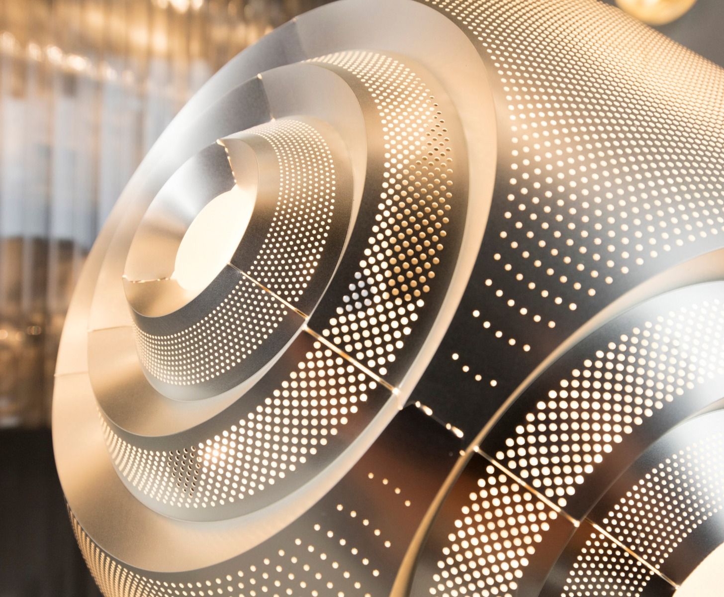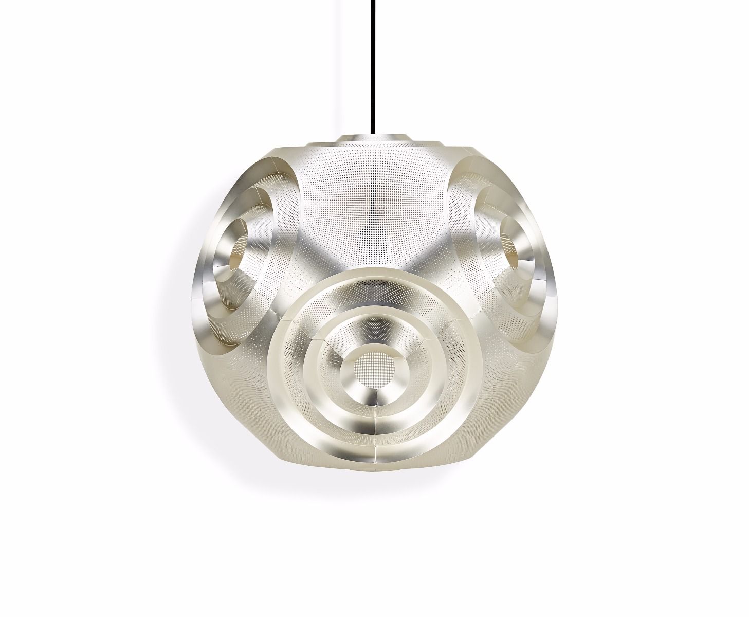 每個吊燈的鏡面拋光是由高度技術化的真空金屬工藝創(chuàng)造的,聚碳酸酯外殼分泌在金屬內部,空氣被吸出,并由巨大的電荷通過,薄薄的銅箔被氣化成細霧,用真空薄膜沉積到一個新的水平與金屬表面,創(chuàng)造一個非凡的光學效果。