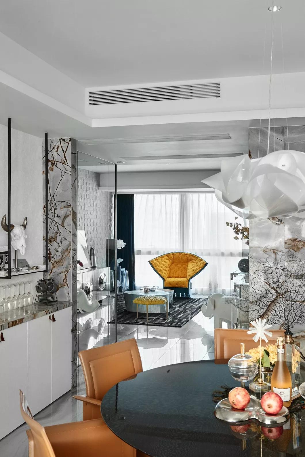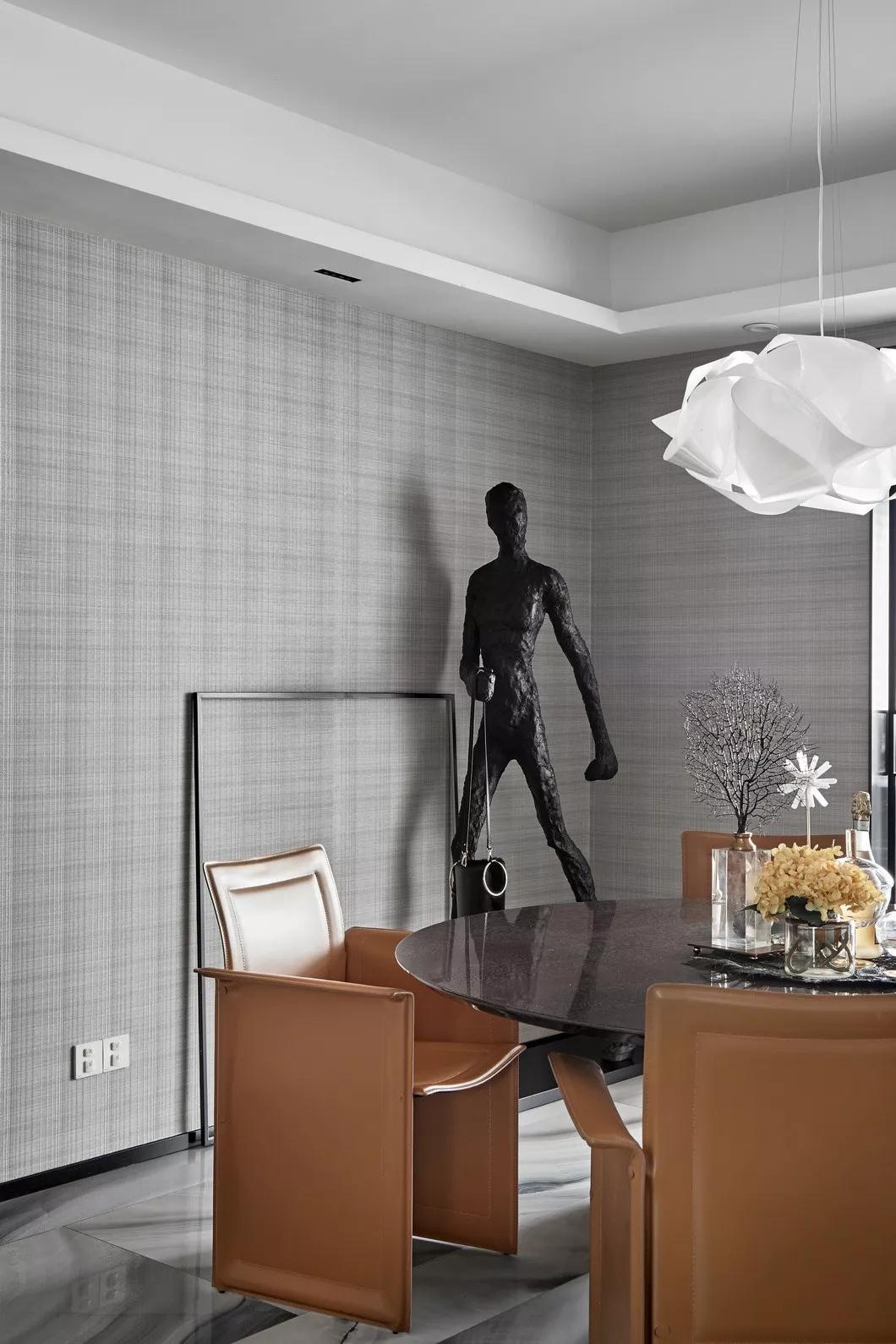 半開放式廚房的備餐臺平日里代替了圓型餐桌的功能,但依然會在正餐廳進(jìn)行視覺性的精心布置。