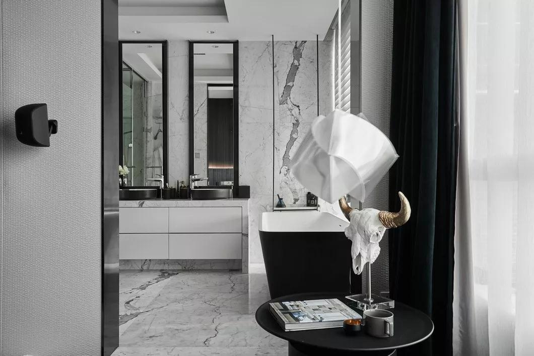 設(shè)計的初衷是將空間打造成適合居住的高端住所,色調(diào)是以黑白灰定位,并未強調(diào)硬性的風(fēng)格,所有家具軟裝皆是后期隨搭隨行,大程度顯示了男女主對于設(shè)計的“任性妄為”。