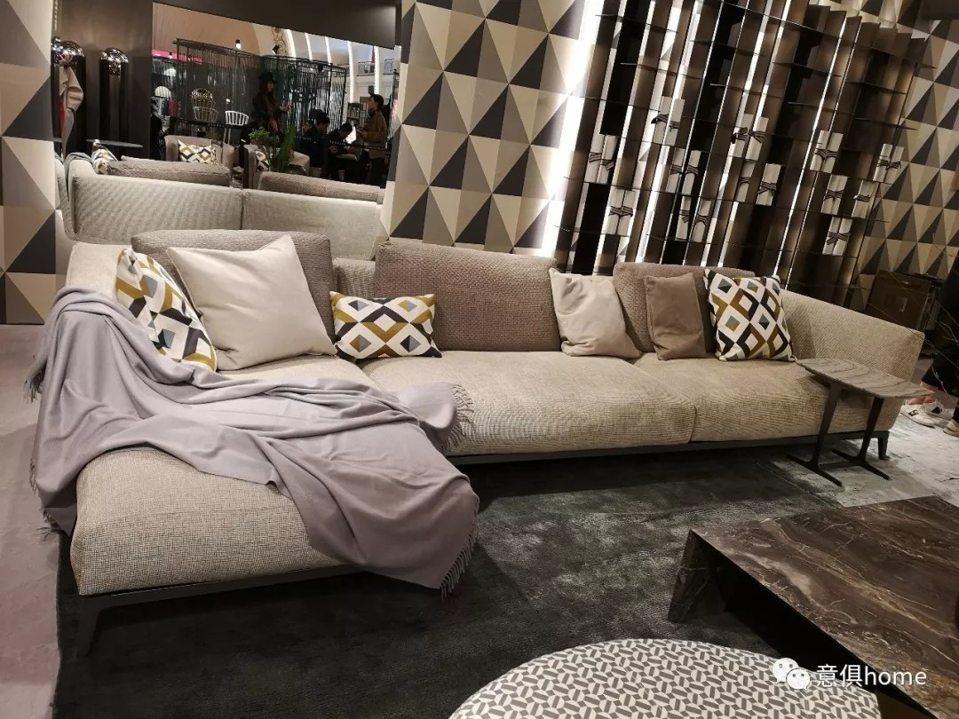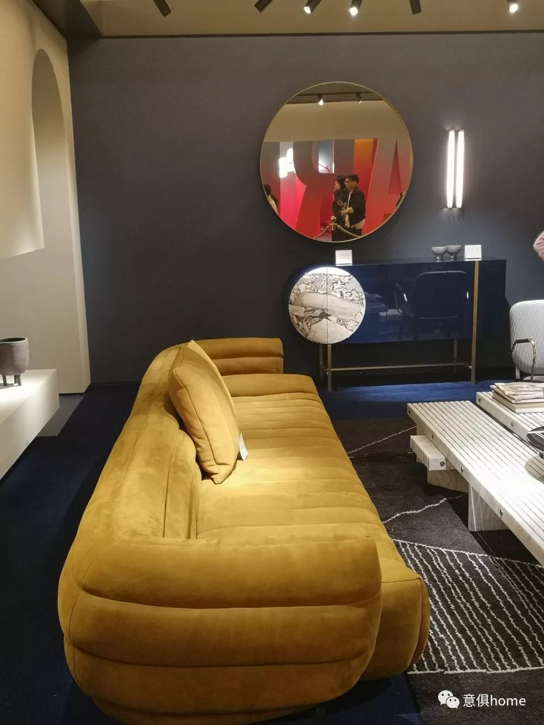 來到PORADA展區(qū),你會看到它不一樣風格的新品,一面巨大的落地鏡子前,是一套組合沙發(fā),棉麻的材料外加舒適的坐感,搭配黑色茶幾,是整個客廳空間變得美妙。
