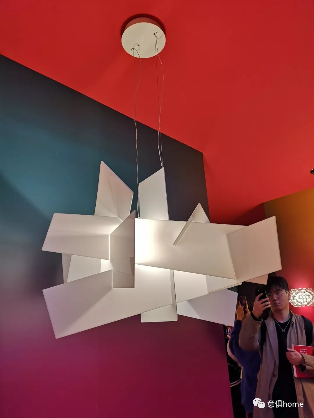 Foscarini這次讓自己的品牌名放大又放大,將自己的產(chǎn)品若隱若現(xiàn)地藏于名牌墻之后,與去年同樣的紅,卻帶給你不一樣的光影體驗。